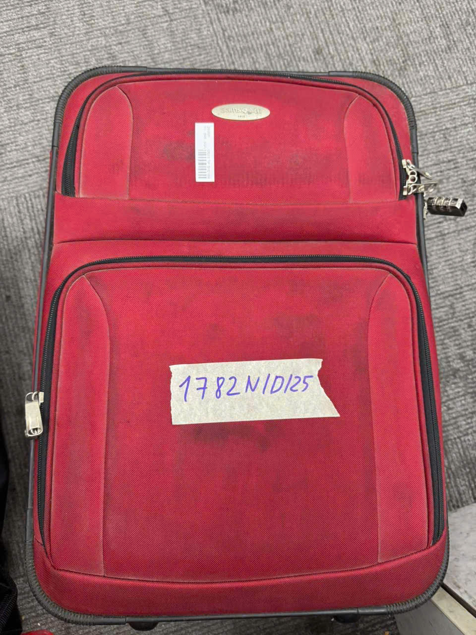 Ngày tiếp nhận: 30/9/2025 Mã hồ sơ: 1782N2025D Mô tả: 01 valy kéo bằng vải màu đỏ gắn logo chữ "SAMSONITE". |
