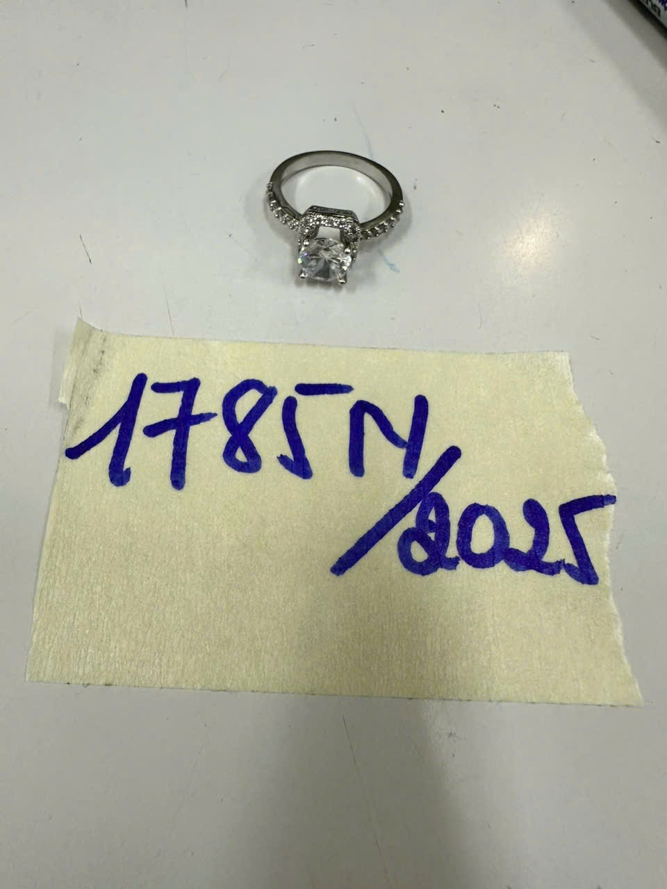 Ngày tiếp nhận: 30/9/2025 Mã hồ sơ: 1785N2025 Mô tả: 01 nhẫn kim loại màu trắng có viên đá trong suốt. |