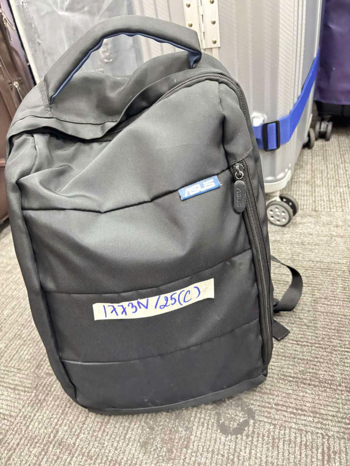 Ngày tiếp nhận: 29/9/2025 Mã hồ sơ: 1773N2025C Mô tả: 01 balo vải màu đen có chữ "ASUS", bên trong có quần áo. |