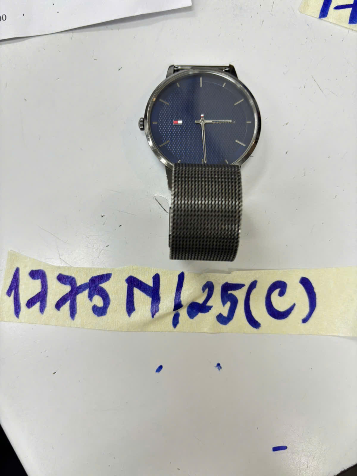 Ngày tiếp nhận: 29/9/2025 Mã hồ sơ: 1775N2025C Mô tả: 01 đồng hồ bằng kim loại màu đen có chữ "TOMMY HILFIGER" kèm dây kim loại màu đen. |