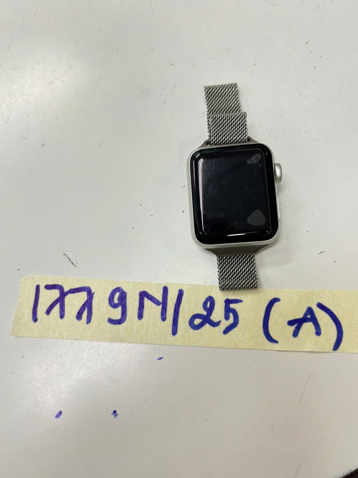 Ngày tiếp nhận: 29/9/2025 Mã hồ sơ: 1779N2025A Mô tả: 01 đồng hồ thông minh mặt vuông màu đen "APPLE WATCH SERIES 3 38MM" viền màu bạc, dây kim loại màu bạc. |