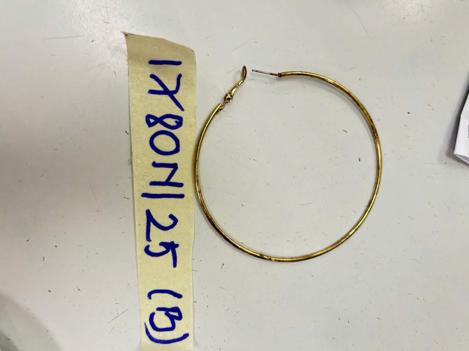 Ngày tiếp nhận: 29/9/2025 Mã hồ sơ: 1780N2025B Mô tả: 01 chiếc khuyên tai hình tròn, bằng kim loại màu vàng không rõ hiệu. |