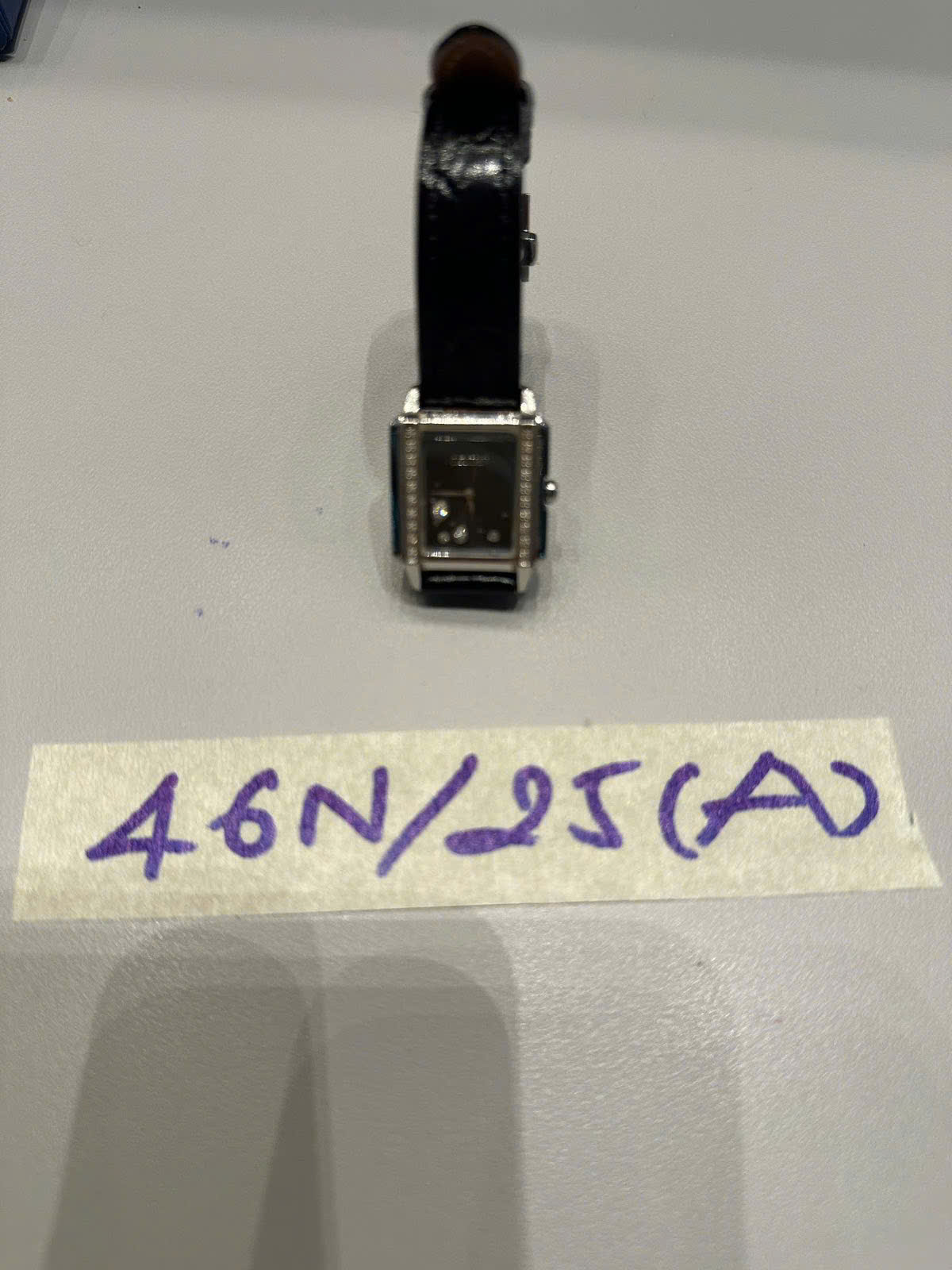 Ngày tiếp nhận: 29/9/2025 Mã hồ sơ: 46N2025A Mô tả: 01 đồng hồ mặt vuông kim loại dây da màu đen "CITIZEN". |