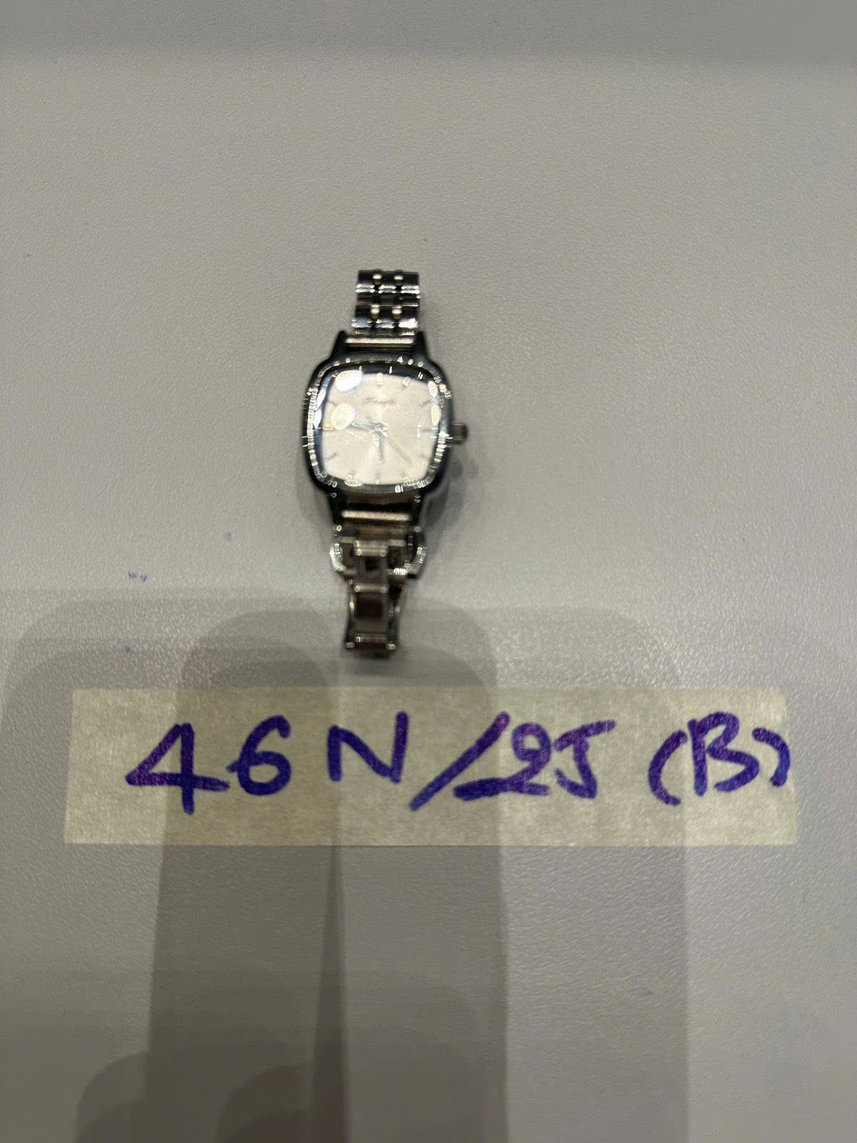Ngày tiếp nhận: 29/9/2025 Mã hồ sơ: 46N2025B Mô tả: 01 đồng hồ mặt vuông kim loại "Xingile". |
