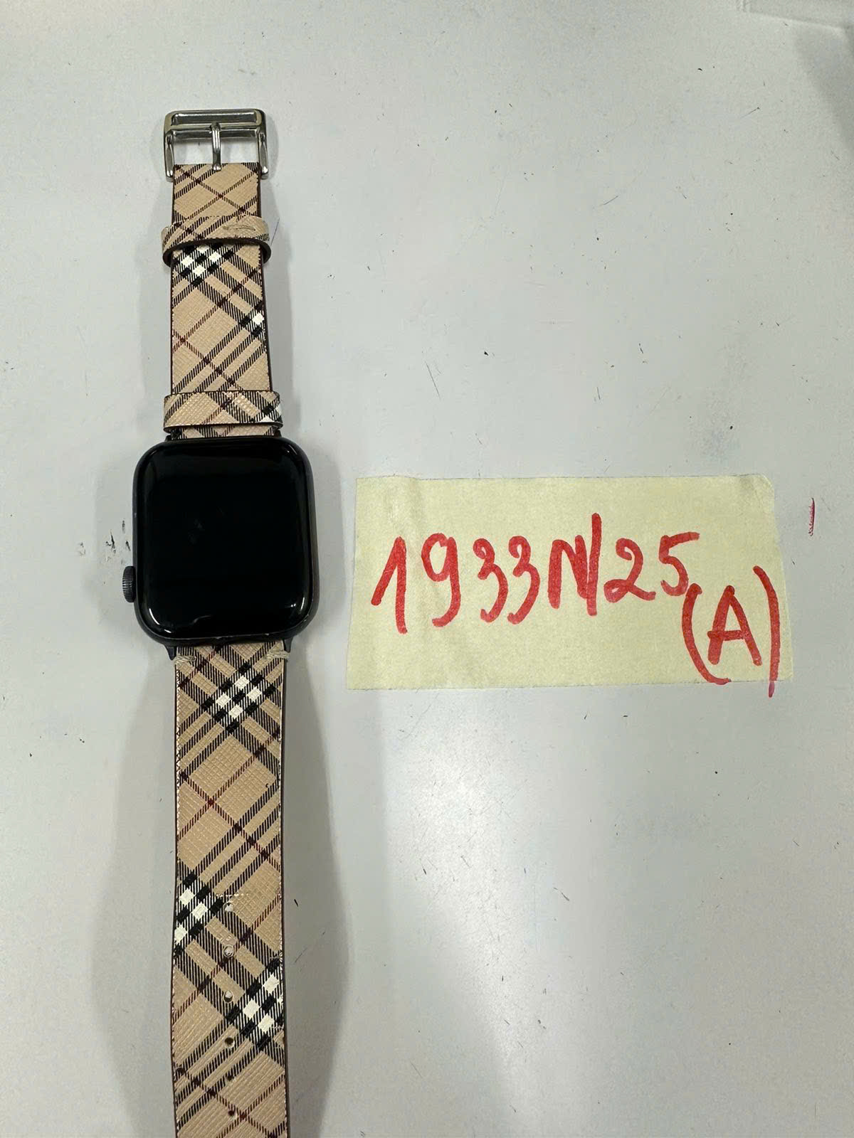 Ngày tiếp nhận: 31/10/2025 Mã hồ sơ: 1933N2025A Mô tả: 01 đồng hồ thông minh APPLE WATCH 5,dây đeo bằng da họa tiết kẻ màu nâu. |