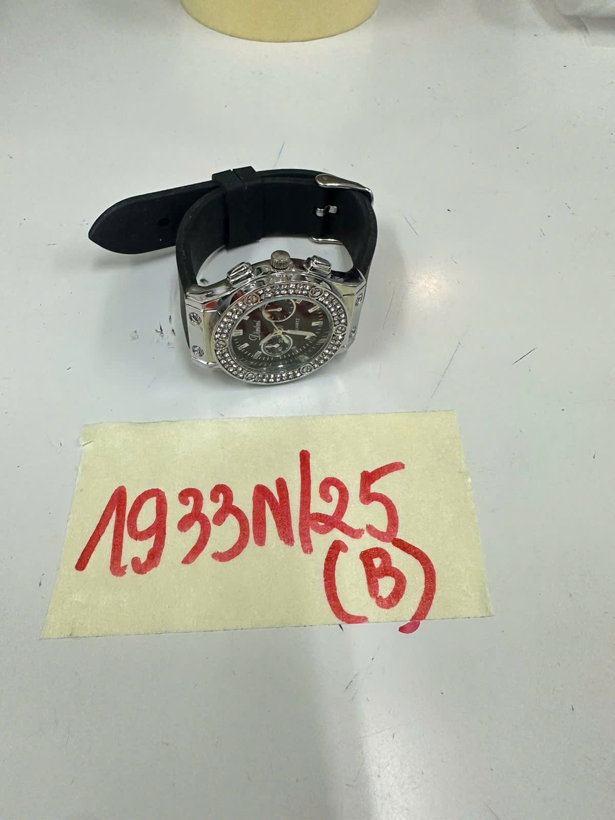Ngày tiếp nhận: 31/10/2025 Mã hồ sơ: 1933N2025B Mô tả: 01 đồng hồ kim loại màu bạc mặt tròn có chữ DLMLML QUATZ dây đeo cao su đen. |