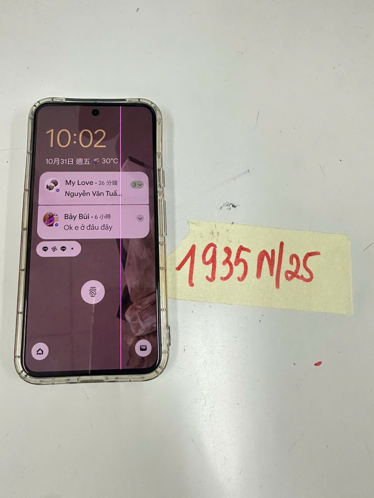 Ngày tiếp nhận: 31/10/2025 Mã hồ sơ: 1935N2025 Mô tả: 01 điện thoại di động màu đen có chữ G và 01 mảnh giấy màu vàng. |