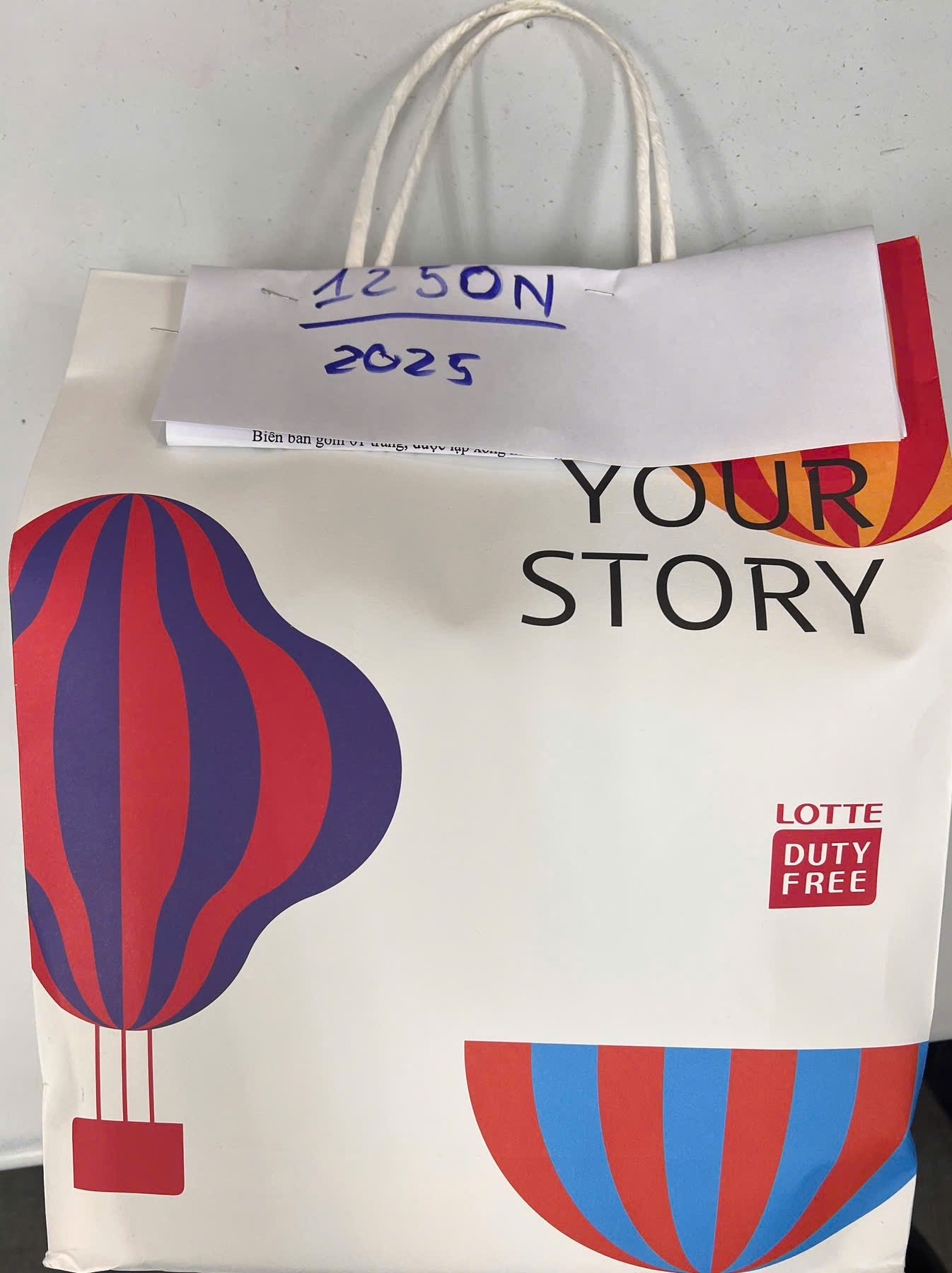 Ngày tiếp nhận: 09/7/2025 Mã hồ sơ: 1250N2025 Mô tả: 01 Túi xách giấy màu trắng, bên trong có : 01 túi nhực trong suốt,02 hộp giấy màu vàng có in chữ nước ngoài. |