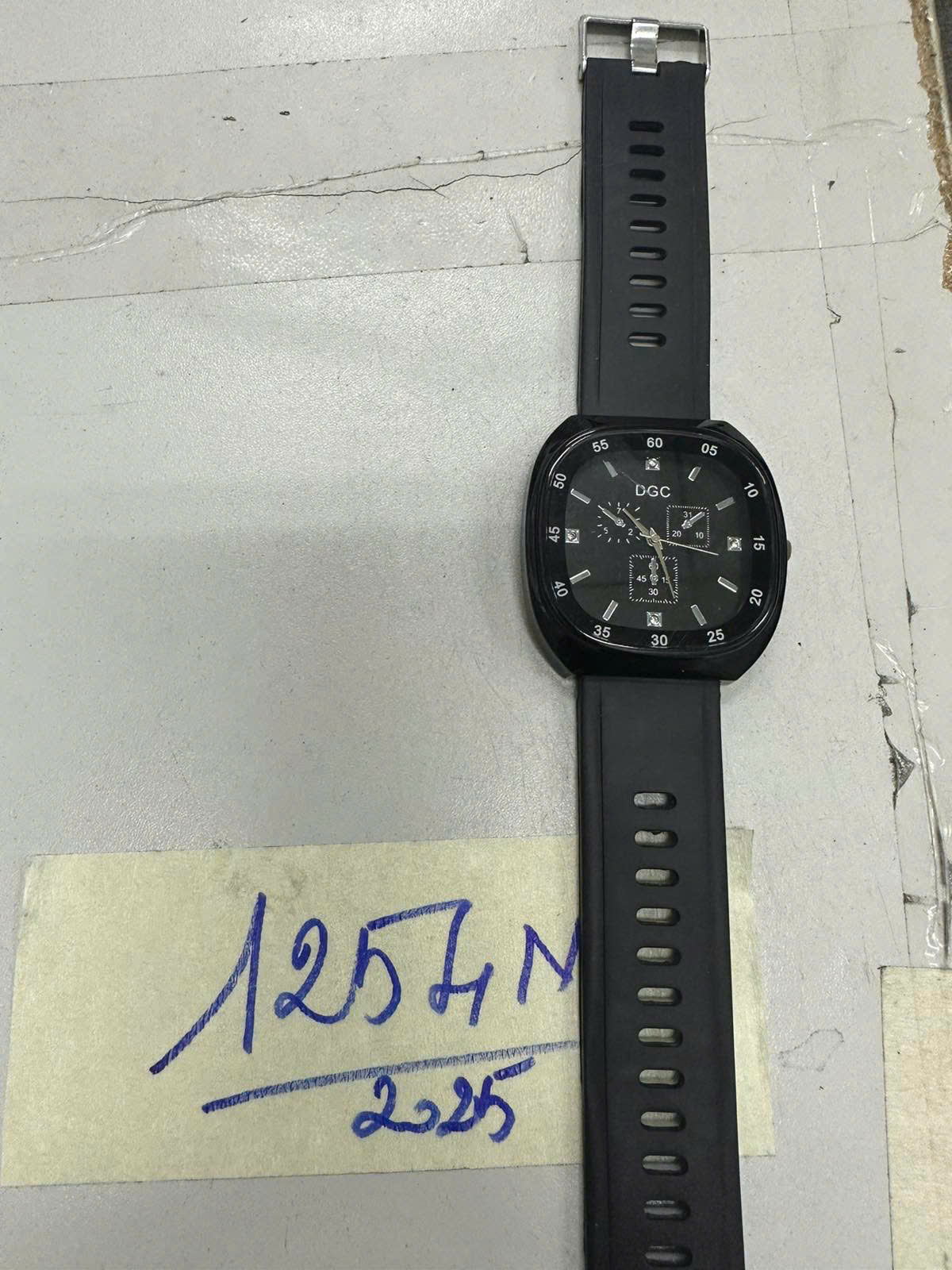 Ngày tiếp nhận: 09/7/2025 Mã hồ sơ: 1254N2025 Mô tả: 01 Đồng hồ mặt kim loại hình vuông màu đen có logo chữ DGC, dây đeo cao su màu đen. |