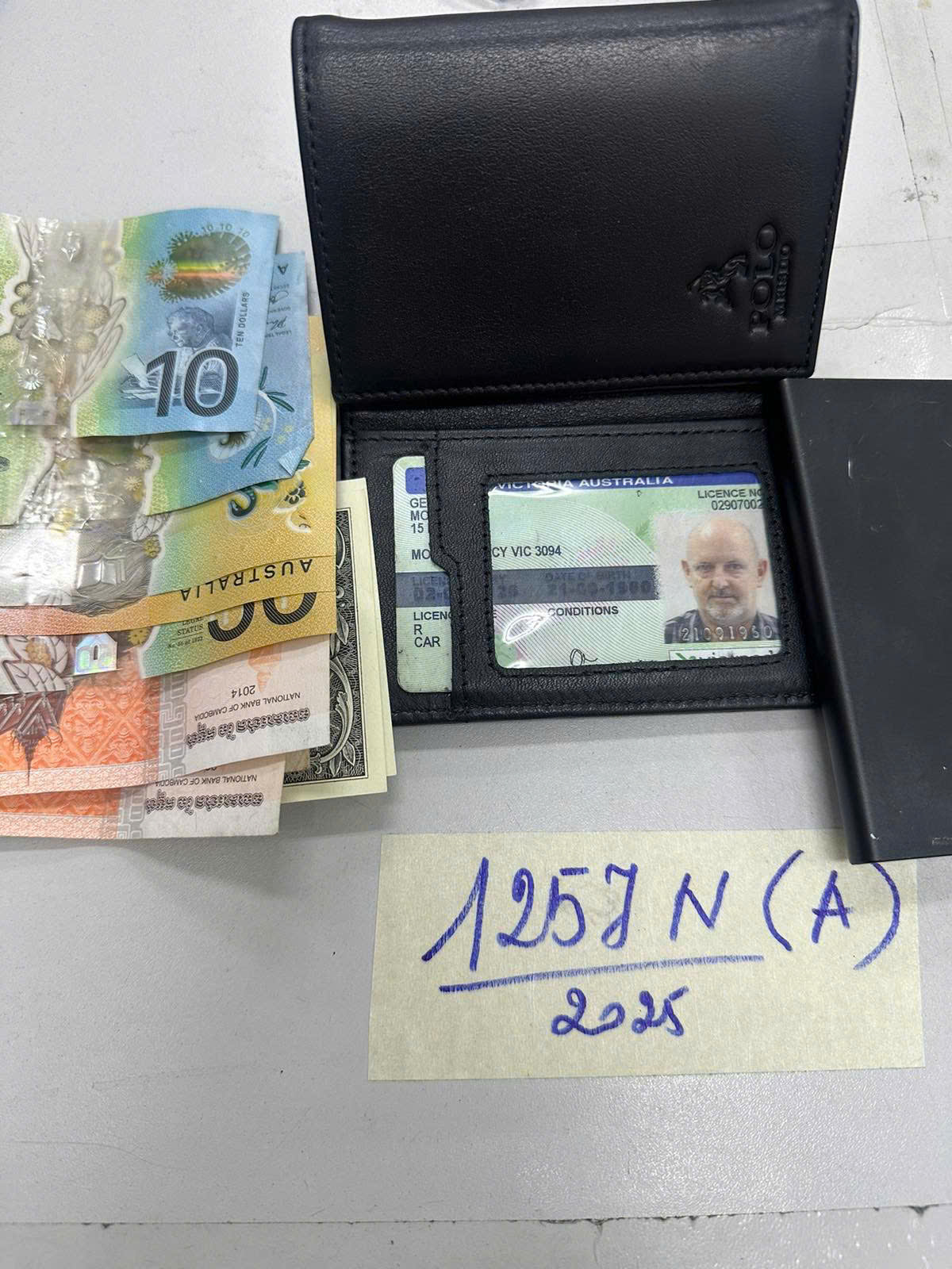 Ngày tiếp nhận: 09/7/2025 Mã hồ sơ: 1257N2025A Mô tả: 01 Ví da tiền màu đen có chữ polo, bên trong có thẻ ID mang tên Gerald morison,170 đô úc,2 đô mỹ,200 tiền Campuchia. |