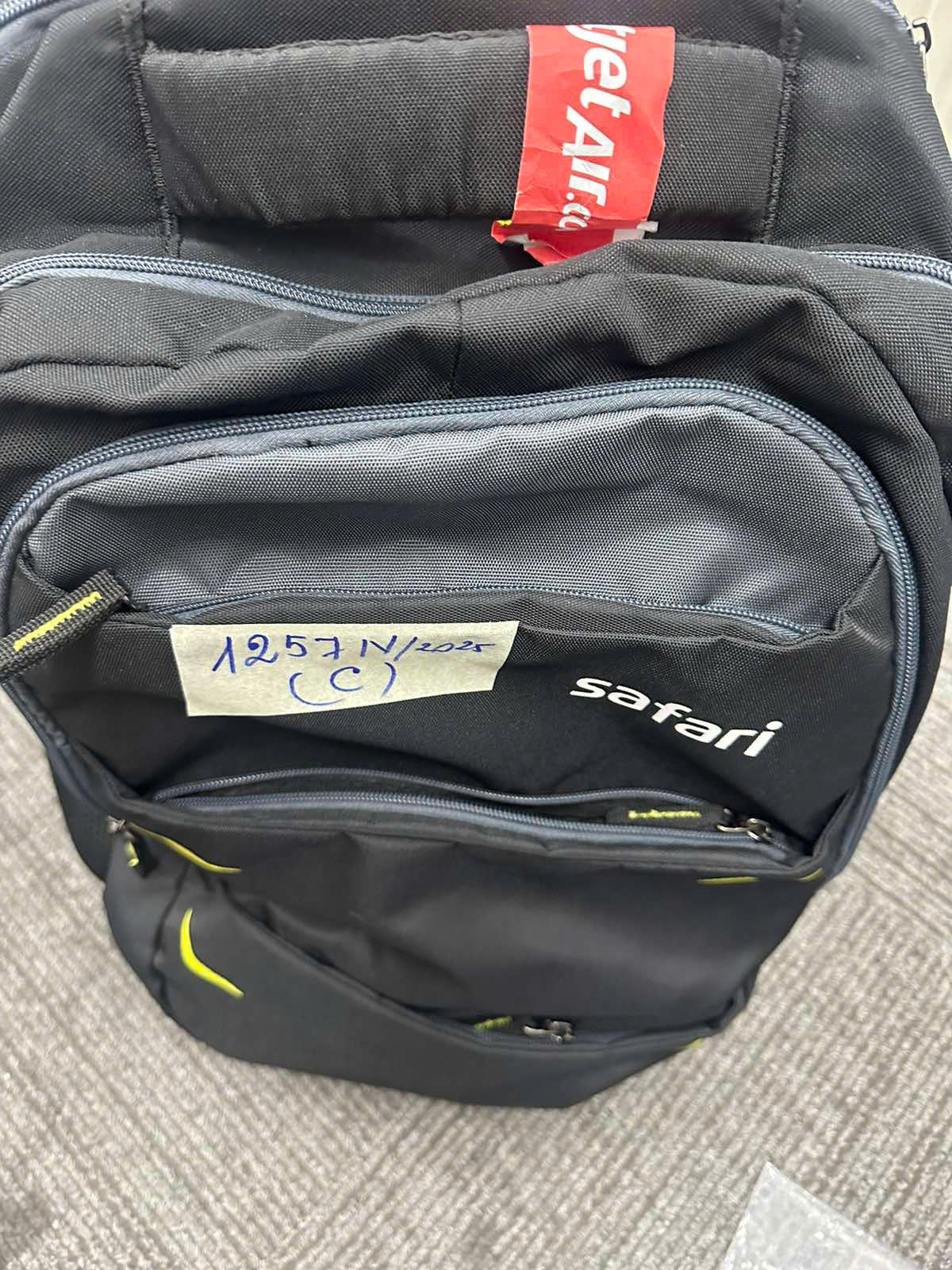 Ngày tiếp nhận: 09/7/2025 Mã hồ sơ: 1257N2025C Mô tả: 01 balo màu đen có logo chữ Safari có quần áo qua sử dụng. |