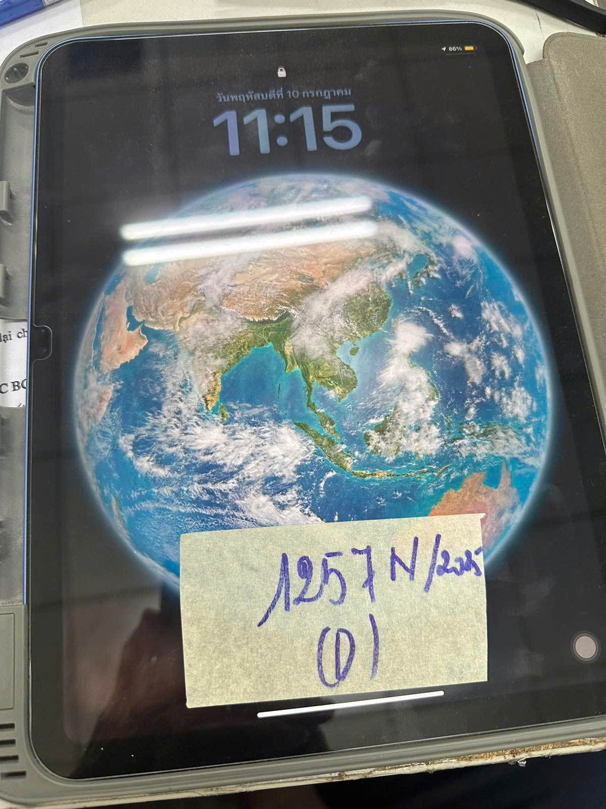 Ngày tiếp nhận: 09/7/2025 Mã hồ sơ: 1257N2025D Mô tả: 01 máy tỉnh bảng ipad có mặt lưng màu xanh, ốp lưng nhựa trong suốt. |