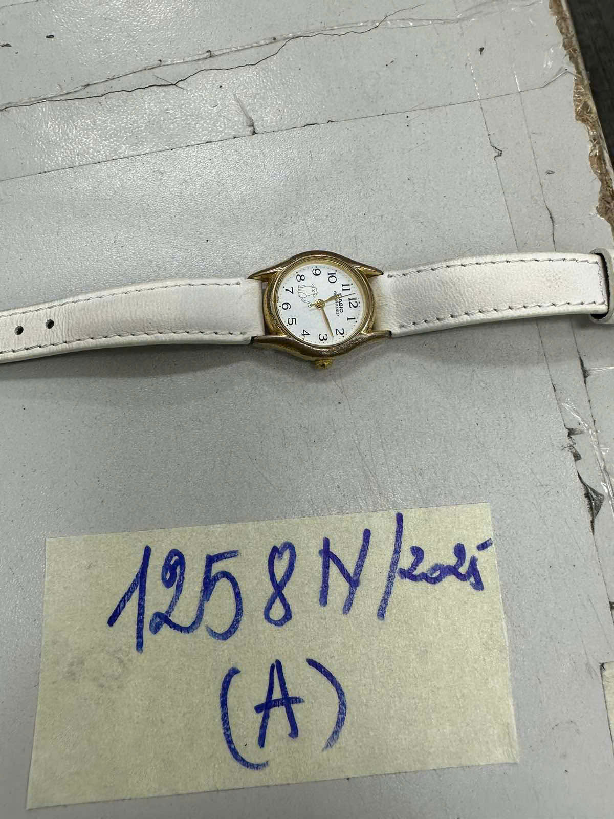 Ngày tiếp nhận: 09/7/2025 Mã hồ sơ: 1258N2025A Mô tả: 01 Đồng hồ màu vàng mặt trắng có chữ Casio, dây cao su màu trắng. |