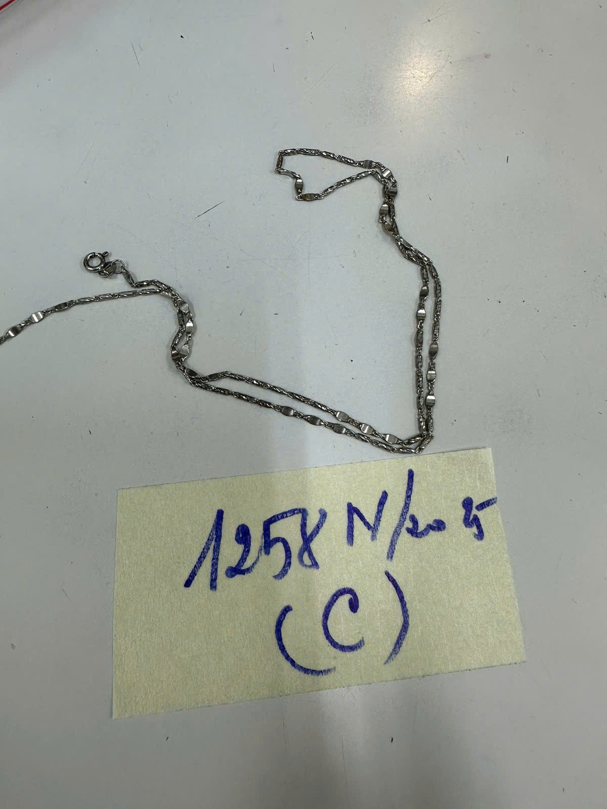Ngày tiếp nhận: 09/7/2025 Mã hồ sơ: 1258N2025C Mô tả: 01 dây chuyền màu trắng có chữ Italy S925. |