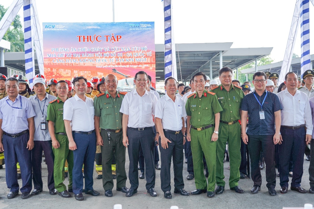 Cảng HKQT Tân Sơn Nhất với sự tham dự của đồng chí Đặng Ngọc Cương, Bí thư Đảng ủy, Giám đốc Cảng HKQT Tân Sơn Nhất; đồng chí Nguyễn Công Hoàn, UV. BTV Đảng ủy, Phó Giám đốc Cảng, Trưởng Ban Chỉ đạo diễn tập năm 2024; đồng chí Nguyễn Toàn Đắc, Phó Giám đốc Cảng; đại diện thủ trưởng các phòng chức năng, trung tâm trực thuộc Cảng cùng các lực lượng tham gia diễn tập PCCC năm 2024.