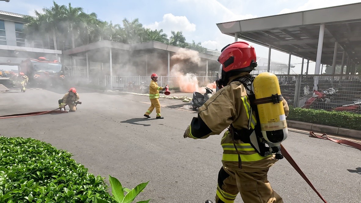 Diễn tập cấp cơ sở về PCCC&CNCH năm 2024 lấy tình huống giả định “Vào lúc 09h30p, tại Nhà giữ xe số 2, khu vực nhà xe hai bánh nội bộ ga Quốc tế đã xảy ra cháy do xe máy chập điện hoặc rò rỉ nhiên liệu gặp nguồn nhiệt gây cháy”. Đây là tình huống cháy số 8 trong Kế hoạch đã được Cảnh sát PCCC&CNCH Công an Tp. Hồ Chí Minh phê duyệt ngày 16/5/2023.