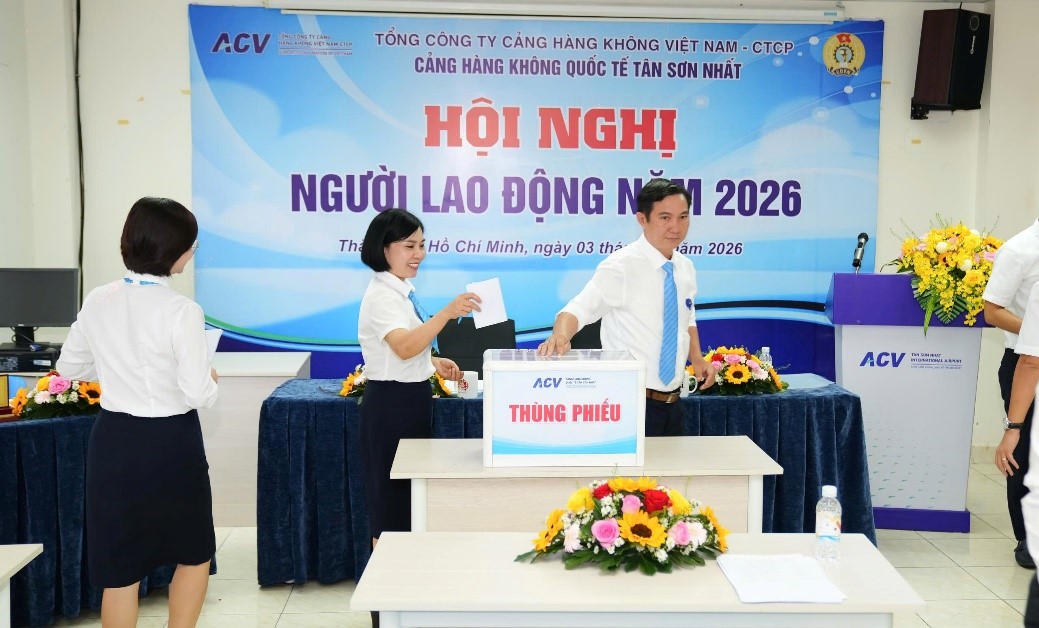 Sáng ngày 03/02/2026, Cảng hàng không quốc tế Tân Sơn Nhất đã tổ chức Hội nghị Đại biểu Người lao động năm 2026 thành công tốt đẹp với sự có mặt đầy đủ của 100 Đại biểu chính thức được bầu từ các đơn vị đại diện cho đội ngũ Cán bộ, CNV-NLĐ Cảng HKQT Tân Sơn Nhất.