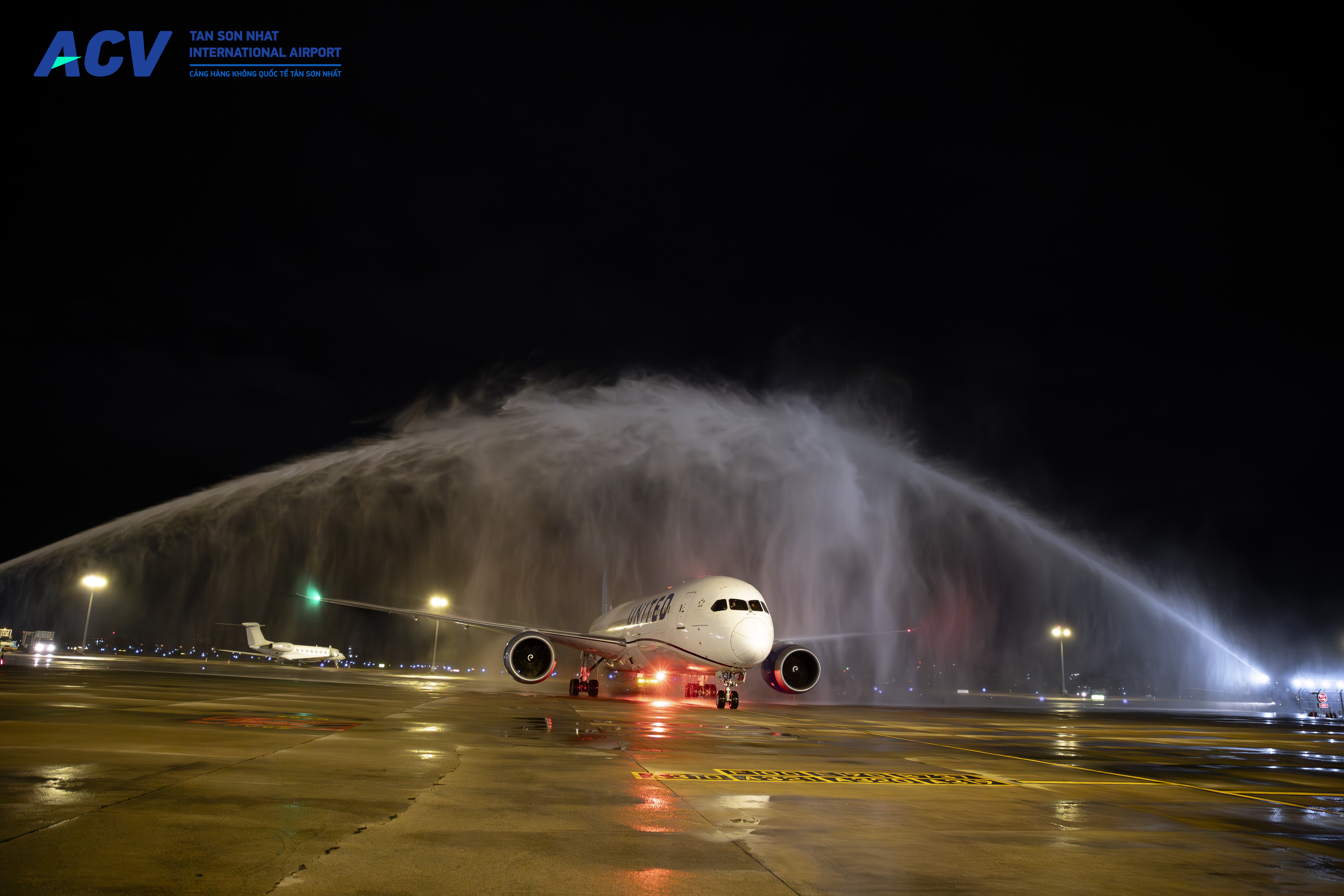 Các đơn vị chúc mừng chuyến bay thương mại đầu tiên của United Airlines tại Cảng HKQT Tân Sơn Nhất