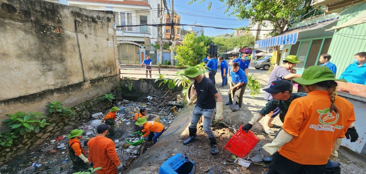 Lực lượng đoàn viên đã triển khai các họat động như: phát tờ rơi tuyên truyền về “Bảo vệ môi trường khu dân cư và nơi công cộng” đến các hộ dân sinh sống gần khu vực lân cận; tặng các thùng rác với thông điệp “Giữ gìn vệ sinh nơi công cộng” cho các hộ dân tiêu biểu; thu, gom và dọn dẹp vệ sinh các khu vực mương, cống thoát nước đường Ba Vì, Sầm Sơn...