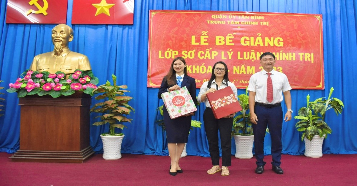Lớp Sơ cấp Lý luận Chính trị Khóa II năm 2023 rất vinh dự và tự hào khi có sự hiện diện của đồng chí Nguyễn Xuân Tiến, Trưởng Ban tuyên giáo Quận ủy Tân Bình, Giám đốc Trung tâm Chính trị tại Lễ Khai giảng và Bế giảng của khóa học. Đồng chí đã gửi lời cảm ơn đến Ban lãnh đạo các đơn vị đã tạo điều kiện và quan tâm trong việc đào tạo trình độ LLCT cho đội ngũ cán bộ, đặc biệt là đội ngũ cán bộ trẻ trong giai đoạn hiện nay. Đồng chí cũng gửi lời chúc mừng đến các học viên đã hoàn thành khóa học và các học viên đạt trình độ tốt nghiệp đạt loại “Giỏi”. Đặc biệt, đồng chí đã dành tặng 02 phần quà cho 02 học viên có câu trả lời hay nhất đối với câu hỏi mà đồng chí đã đặt ra trong buổi Lễ Khai giảng.