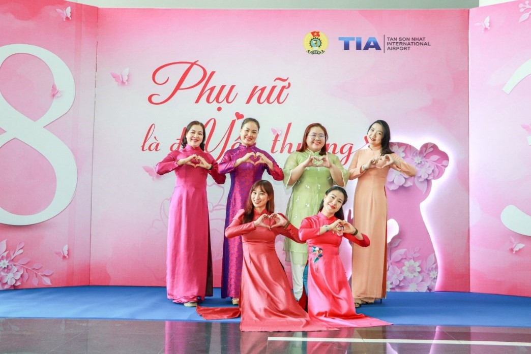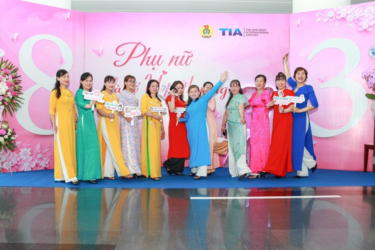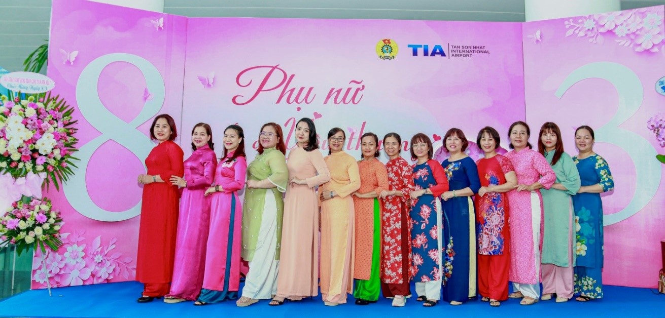 Trong không khí tưng bừng của Thành phố Hồ Chí Minh hưởng ứng tuần lễ áo dài, Ban Chấp hành Công Đoàn Cảng HKQT Tân Sơn Nhất đã tổ chức Họp mặt chào mừng ngày Quốc tế Phụ nữ 8/3 với chủ đề: “Phụ nữ là để yêu thương” cho toàn thể người lao động nữ tham dự với chương trình hoạt động sôi nổi và ý nghĩa. Phụ nữ Việt Nam tự hào với nét duyên dáng của tà áo dài truyền thống, tôn lên giá trị, phẩm chất nét đẹp tươi sáng, tự tin và hạnh phúc.