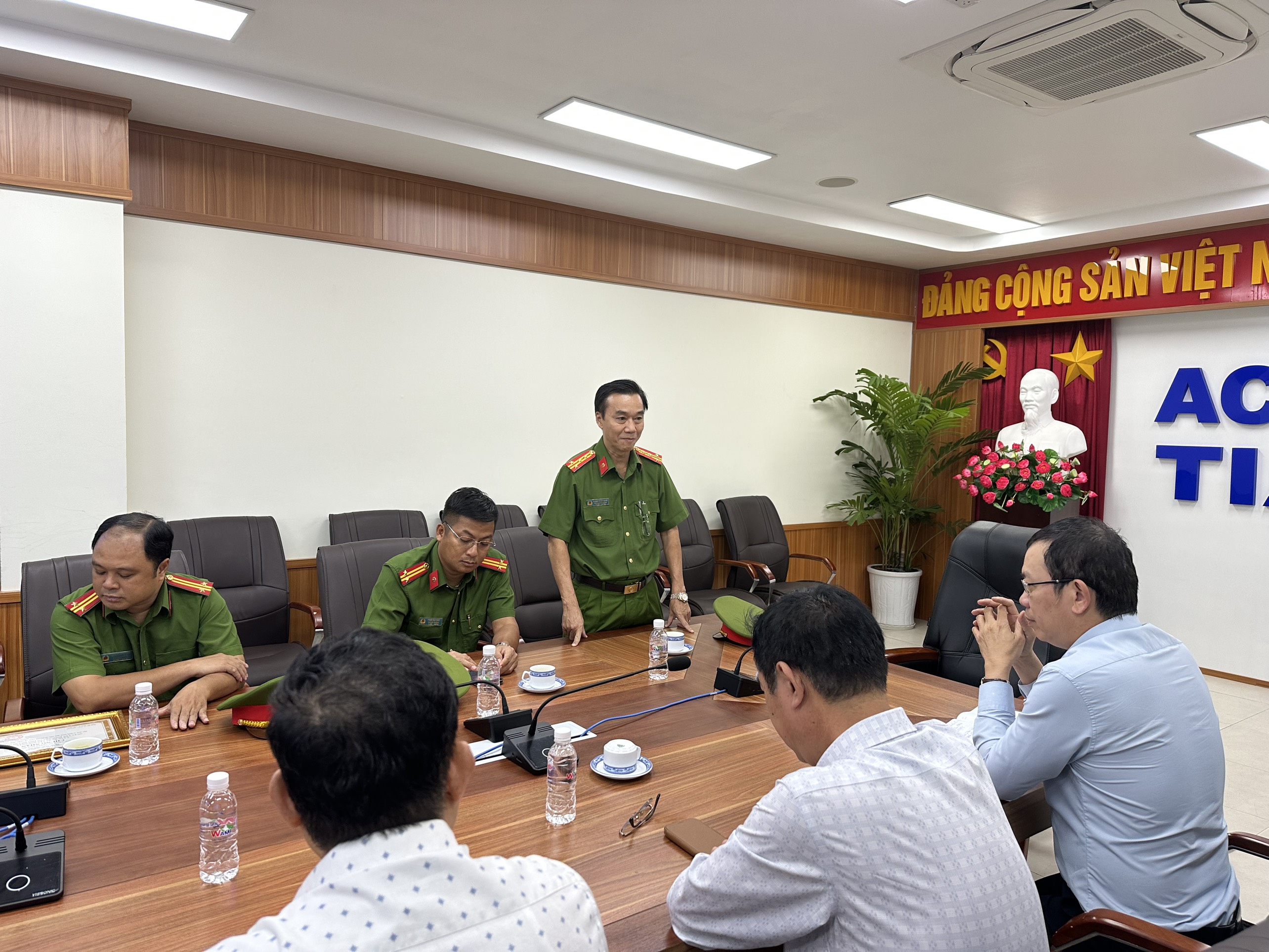 Đồng chí Đại tá Huỳnh Ngọc Quan – Phó Trưởng Phòng Cảnh sát PCCC và CNCH – Công an Thành phố Hồ Chí Minh phát biểu Hội nghị