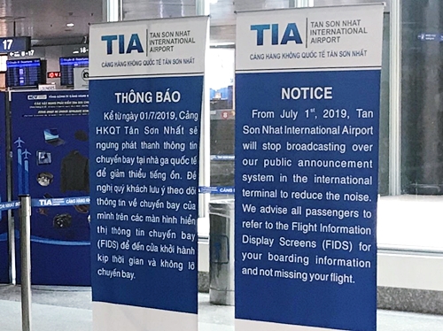 Kể từ ngày 01/ 7/2019 sắp tới, Cảng HKQT Tân Sơn Nhất sẽ ngưng phát thanh tại nhà ga quốc tế nhằm giảm thiểu tiếng ồn và xây dựng một “sân bay im lặng”. Đến tháng 10 sẽ tiến hành áp dụng tại nhà ga quốc nội. Đây là một xu hướng đã và đang được áp dụng tại nhiều sân bay trên quốc tế nhằm mang lại cho hành khách sự thoải mái, dễ chịu, không bị làm phiền bởi những đoạn phát thanh liên tục khi đến sân bay. Được biết, các sân bay quốc tế lân cận như Changi (Singapore) và Kuala Lumpur (Malaysia) cũng đã sớm áp dụng hình thức này kể từ cuối năm 2017 và 2018.