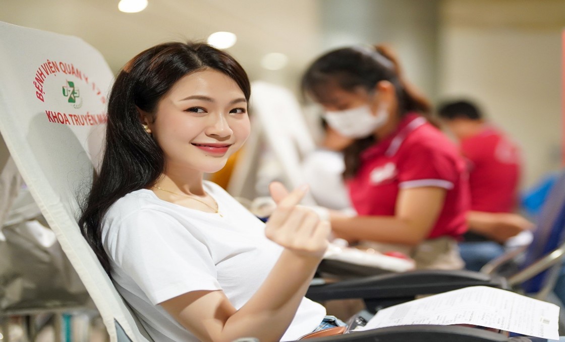 Người đẹp được yêu thích nhất cuộc thi Hoa hậu Việt Nam năm 2020 Đậu Hải Minh Anh đến tham gia hiến máu sáng ngày 5/5/2023