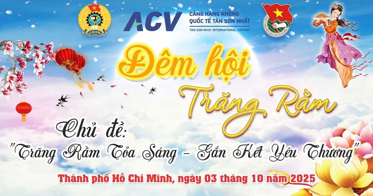 Chiều ngày 03/10/2025 vừa qua, Ban Chấp hành Công đoàn, Đoàn Thanh niên Cảng HKQT Tân Sơn Nhất đã phối hợp tổ chức Chương trình đêm Hội với chủ đề “Trăng rằm tỏa sáng – Gắn kết yêu thương” tại toà nhà Tổng Công ty Cảng hàng không Việt Nam-CTCP (ACV) cho hơn 500 thiếu nhi và phụ huynh cùng tham gia vui hội.