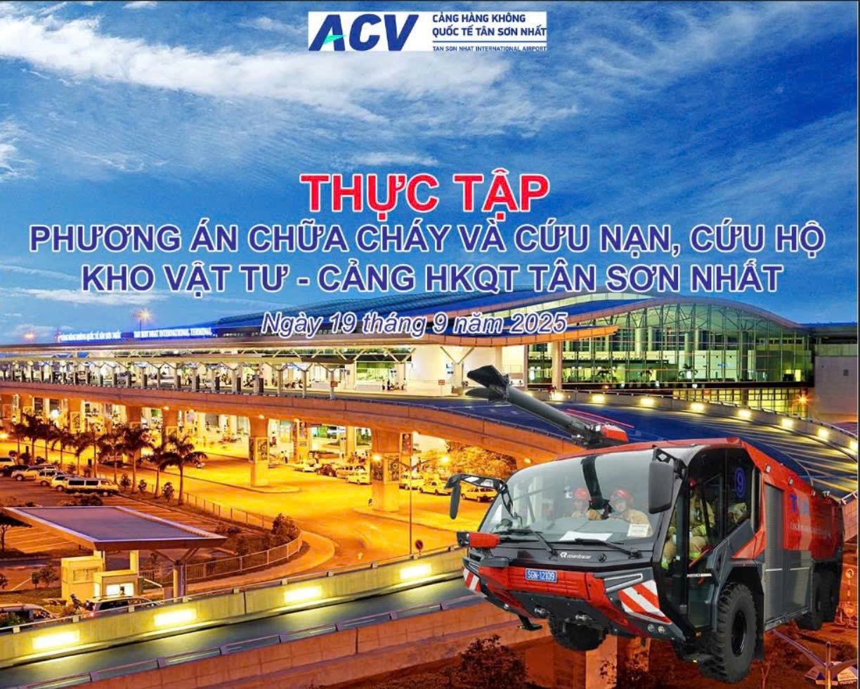 Sáng ngày 19/9/2025, Cảng HKQT Tân Sơn Nhất đã tổ chức chương trình “Diễn tập cấp cơ sở về PCCC&CNCH năm 2025”. Tham dự chương trình có Ông Nguyễn Toàn Đắc - Phó Giám đốc Cảng, Trưởng Ban Chỉ đạo diễn tập năm 2025; Đồng chí Thượng Tá Bùi Trung Hiếu, Phó Trưởng phòng Cảnh sát PCCC&CNCH Công an Tp. Hồ Chí Minh; Đại diện Cảng vụ hàng không Miền Nam; Đồn Công An Cảng HKQT Tân Sơn Nhất, Công An cửa khẩu Cảng HKQT Tân Sơn Nhất, Đồn Công An phường Tân Sơn Hòa; đại diện các Phòng chức năng, Trung tâm trực thuộc Cảng HKQT TSN; Đại diện các đơn vị Hàng không và phi hàng không đang hoạt động tại khu vực Cảng cùng các lực lượng tham gia diễn tập.
