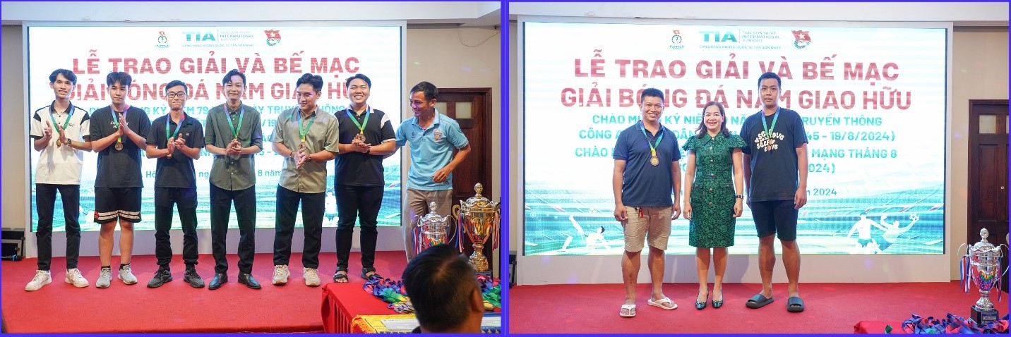 Cảng HKQT Tân Sơn Nhất với sự góp mặt của ông Nguyễn Toàn Đắc, Phó Giám đốc Cảng HKQT Tân Sơn Nhất; ông Phạm Thanh Phong, Chủ tịch Công đoàn Cảng, Giám đốc Trung tâm Điều hành sân bay Tân Sơn Nhất, Trưởng Ban tổ chức Giải; các đồng chí là thủ trưởng các phòng chức năng, trung tâm thuộc Cảng đã cùng góp mặt trao giải và chúc mừng thành công cho mùa giải năm 2024.