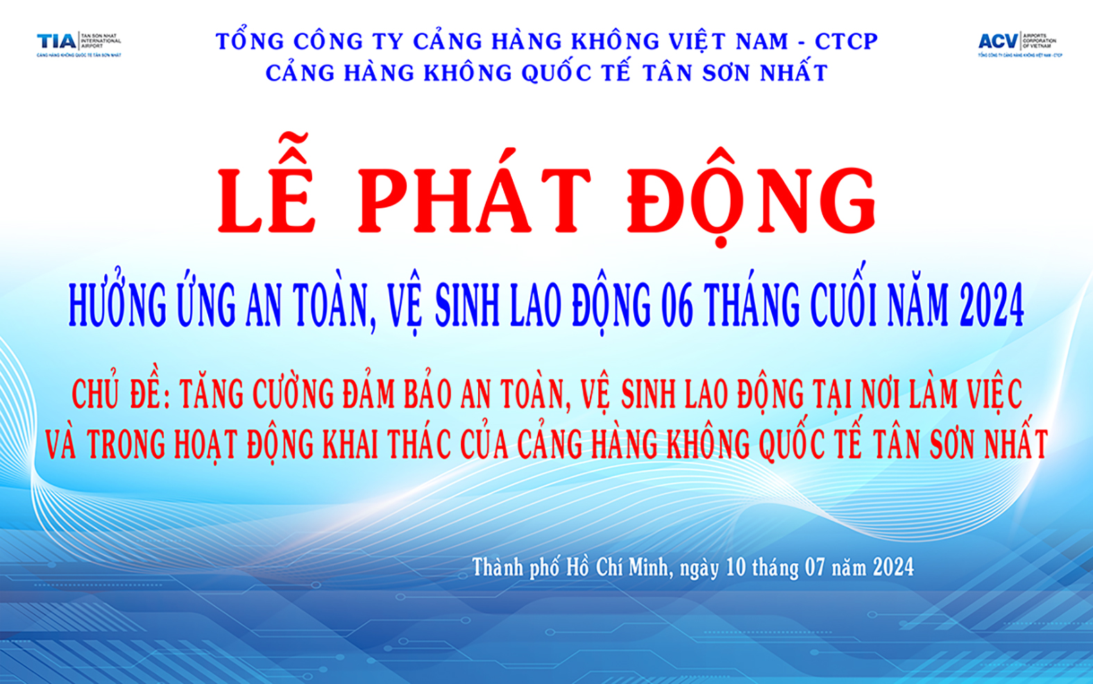 Sáng ngày 10/7/2024, Cảng HKQT Tân Sơn Nhất đã tổ chức thành công Lễ phát động hưởng ứng An toàn - Vệ sinh lao động giai đoạn 06 tháng cuối năm 2024.