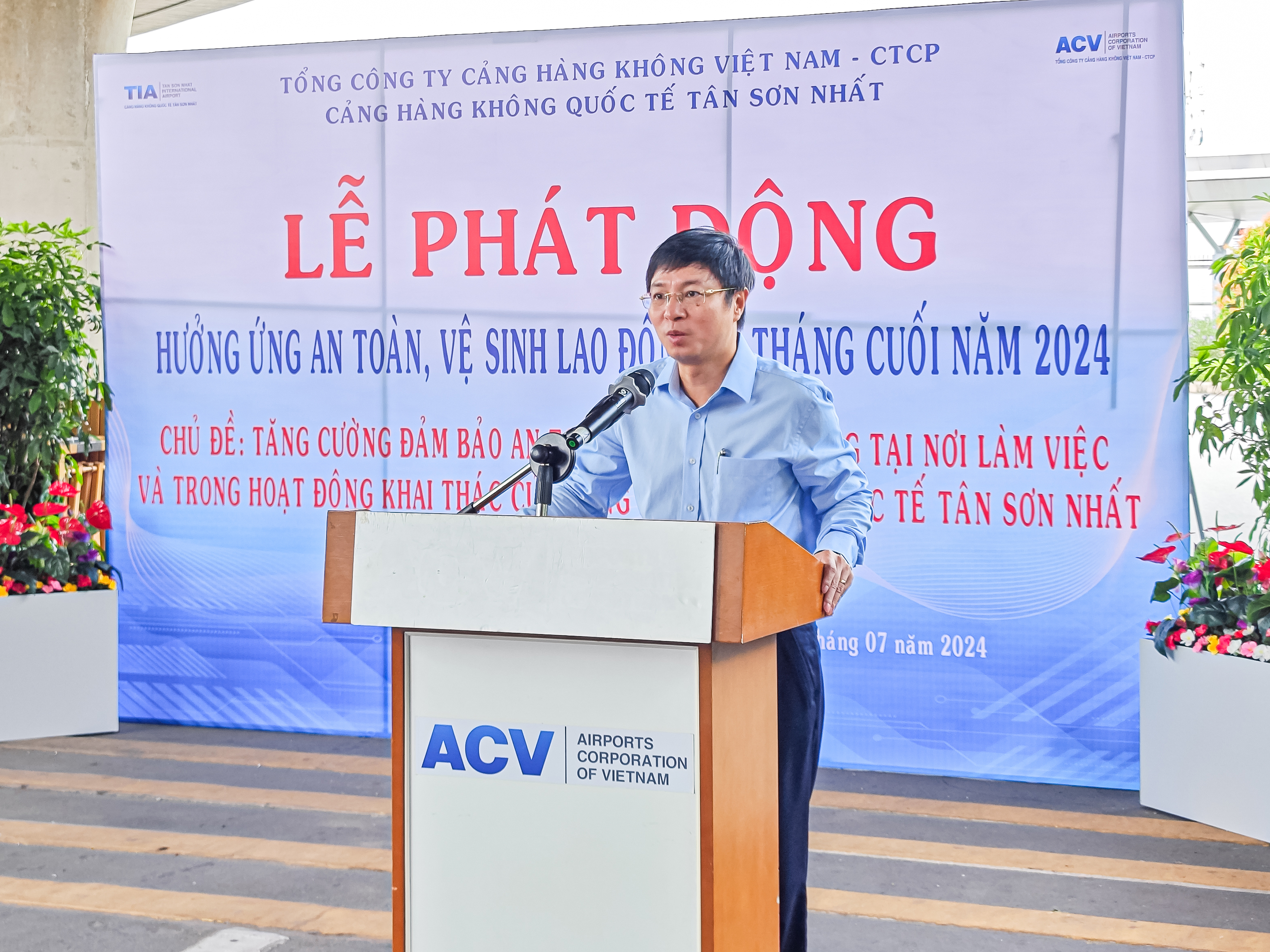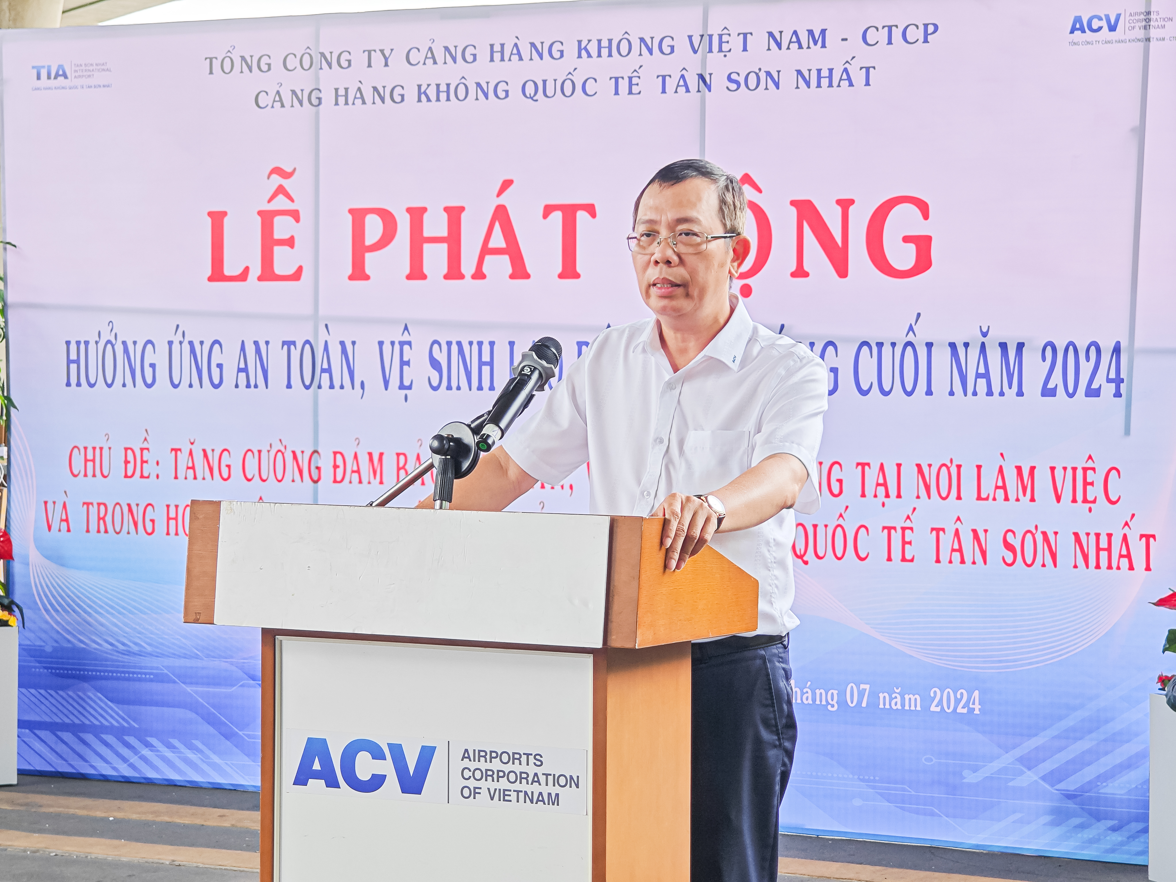 Đồng chí Nguyễn Công Hoàn - PGĐ, Chủ tịch Hội đồng AT-VSLĐ Cảng HKQT Tân Sơn Nhất phát động các đơn vị hưởng ứng chương trình “An toàn- Vệ sinh lao động” giai đoạn 06 tháng cuối năm 2024.