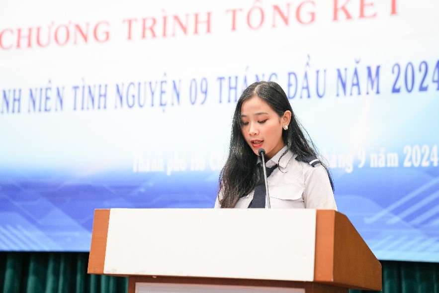 Đại diện đoàn viên Học viện hàng không Việt Nam chia sẻ cảm nghĩ khi tham gia hoạt động TNTN tại Cảng HKQT Tân Sơn Nhất.