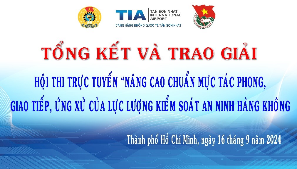 Chiều ngày 16/9/2024, Ban Chấp hành Đoàn Thanh niên Cảng HKQT Tân Sơn Nhất đã tổ chức chương trình “Tổng kết Thanh niên tình nguyện giai đoạn 09 tháng đầu năm và Trao giải Hội thi trực tuyến về nâng cao chuẩn mực đạo đức, tác phong, văn hóa ứng xử của lực lượng An ninh hàng không” tại tòa nhà Tổng công ty Cảng Hàng không Việt Nam – CTCP (ACV).