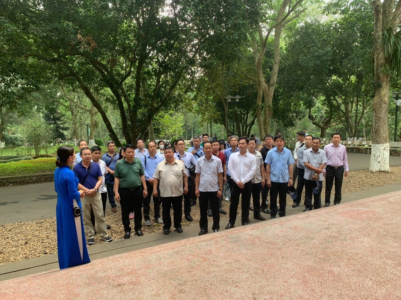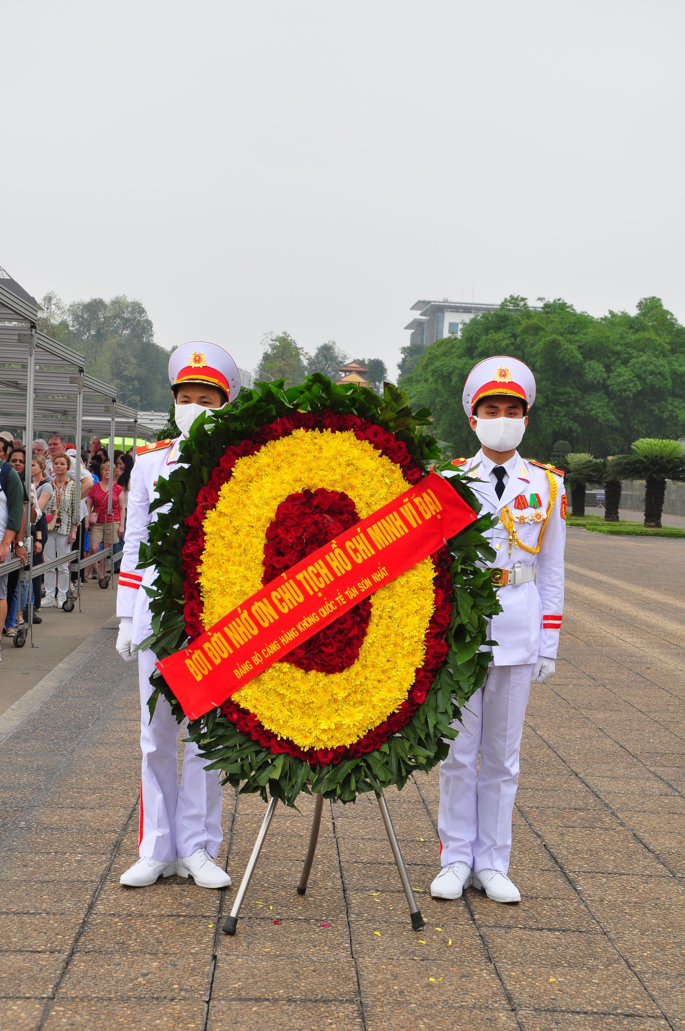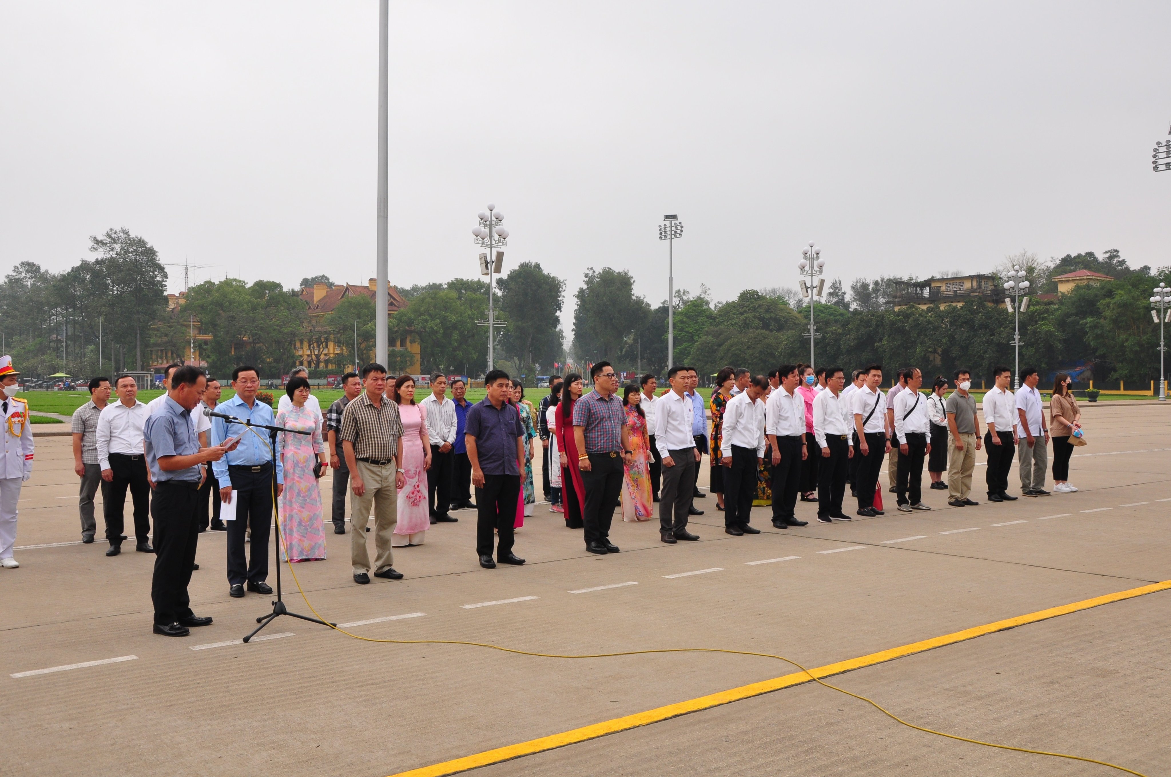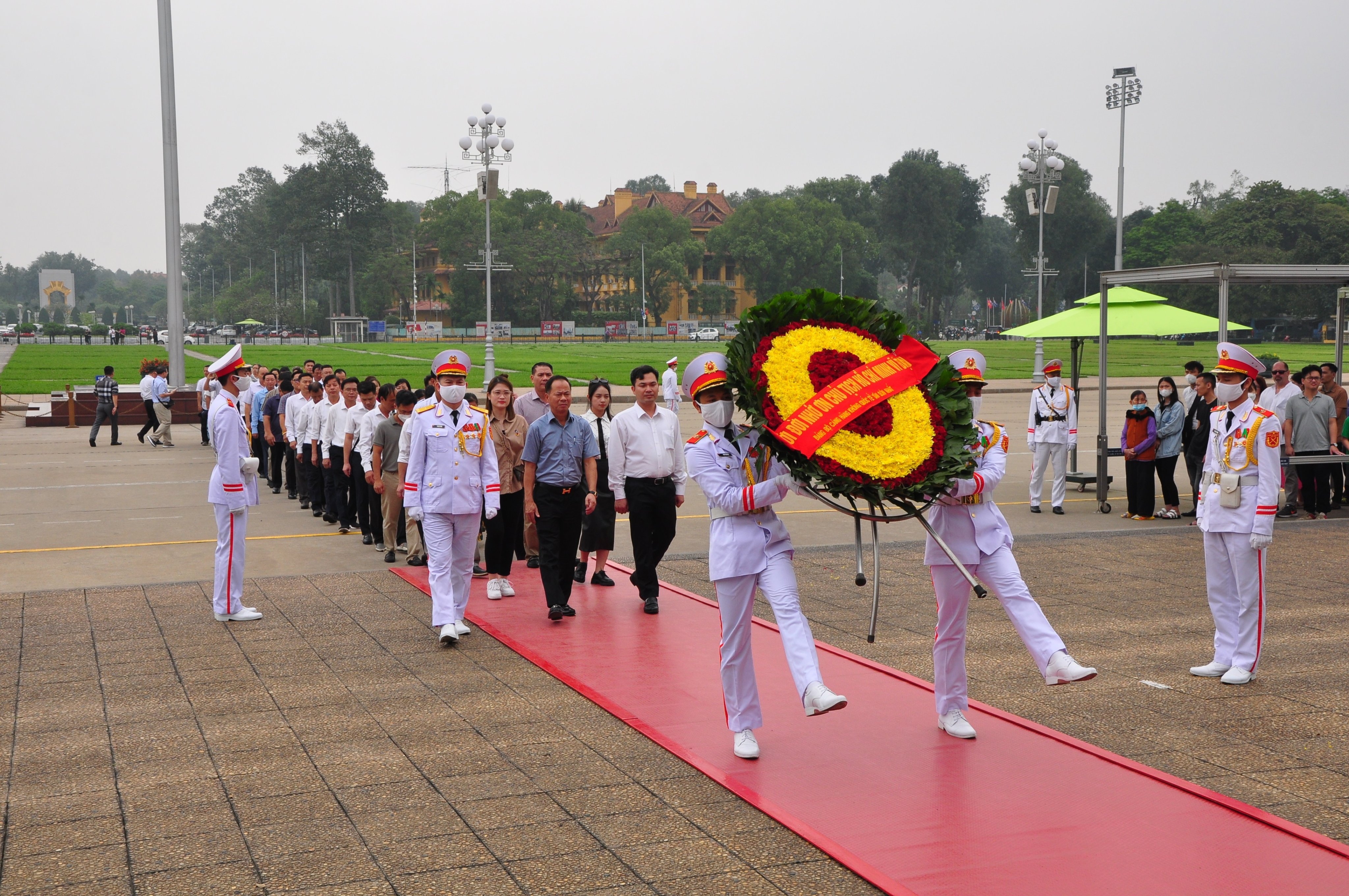 Trong tiếng quân nhạc trang nghiêm, đoàn đại biểu vào Lăng viếng Bác, kính cẩn dâng lên Người những bông hoa tươi thắm, những thành tích xuất sắc, bày tỏ lòng thành kính, biết ơn vô hạn đối công lao to lớn của Chủ tịch Hồ Chí Minh - lãnh tụ vĩ đại của Đảng, Nhà nước và nhân dân Việt Nam. Người đã cống hiến, hy sinh trọn đời cho sự nghiệp giải phóng dân tộc, đấu tranh cho hòa bình và hạnh phúc của nhân dân.