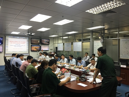 Đại diện Cảng HKQT Tân Sơn Nhất, ông Nguyễn Nam Tiến – Phó giám đốc Cảng đã báo cáo đoàn kiểm tra về kết quả triển khai xây dựng thực hiện các phương án liên quan đến MANPADS và Quyết định 16/2017/QĐ-TTg ngày 16/05/2017, kết quả xử lý các vụ việc vi phạm an ninh hàng không trên địa bàn, cơ chế vận hành và phối hợp xử lý các tình huống khẩn nguy cũng như công tác phối hợp hiệp đồng với các đơn vị quản lý nhà nước, Công an, Hải quan, Quân đội nhằm đảm bảo an ninh trật tự, an toàn hàng không.