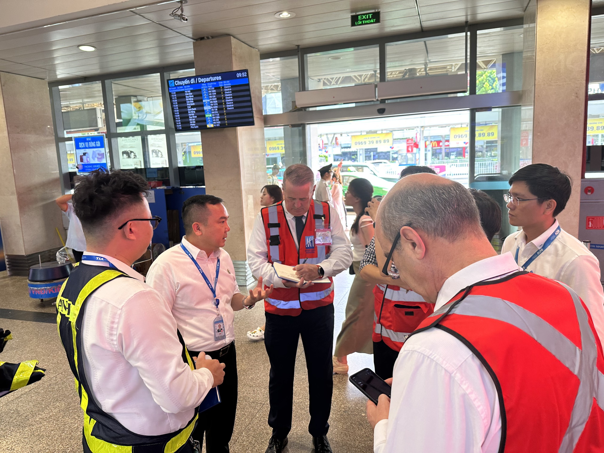 Nội dung của cuộc kiểm tra đánh giá gồm công tác kiểm tra an ninh soi chiếu đối với hành khách, hành lý, hàng hóa tại Cảng HKQT Tân Sơn Nhất; công tác kiểm tra, giám sát an ninh hàng không tại các điểm kiểm tra an ninh nội bộ ra/vào khu vực sân đỗ tàu bay; hồ sơ về công tác kiểm soát an ninh nội bộ, công tác đào tạo, huấn luyện an ninh hàng không; khảo sát và đánh giá cách thức hoạt động của Cảng… Đoàn đã chia thành 02 nhóm gồm 01 nhóm đánh giá thực tế (nhà ga, sân đỗ, kho hàng…) và 01 nhóm thảo luận tại văn phòng với các bộ phận liên quan (đào tạo nhân sự, thẻ an ninh…)