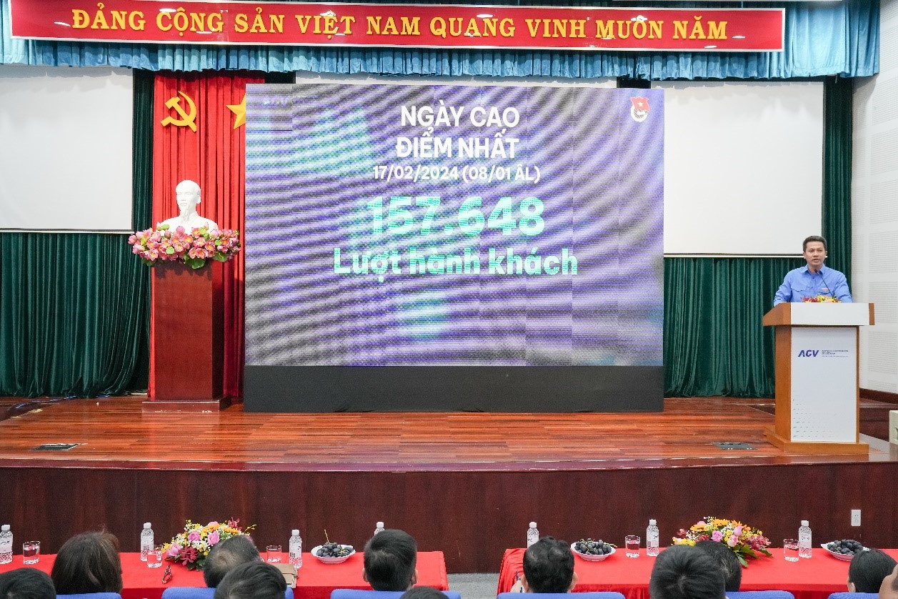 Ngày 23/12 vừa qua tại hội trường ACV, Đoàn Thanh niên Cảng HKQT Tân Sơn Nhất đã tổ chức Hội nghị Tổng kết hoạt động đoàn và phong trào thanh thiếu nhi năm 2024. Chương trình có sự tham dự của đồng chí Ngô Hoài Sơn, Ủy viên Ban Chấp hành Đảng bộ, Bí thư Đoàn Thanh niên TCT Cảng HKVN; đồng chí Nguyễn Thị Phượng, Phó Trưởng công an Cửa khẩu Cảng HKQT Tân Sơn Nhất; đồng chí Phạm Thanh Phong, Chủ tịch Công đoàn Cảng, Giám đốc Trung tâm Điều hành sân bay Tân Sơn Nhất; các đồng chí thủ trưởng, Bí thư Đoàn Thanh niên các đơn vị đang hoạt động tại khu vực Cảng HKQT Tân Sơn Nhất và các Quận đoàn, Thành Đoàn trên địa bàn Thành phố; cùng với sự góp mặt của hơn 200 cán bộ đoàn, đoàn viên, thanh niên các đơn vị trong và ngoài Cảng.