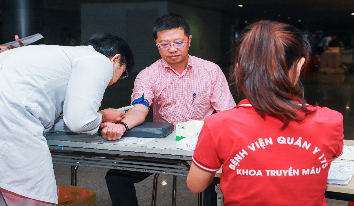 Ông Lưu Việt Hùng, Phó Tổng Giám đốc Công ty CP Phục vụ mặt đất Sài Gòn SAGS tham gia hiến máu.