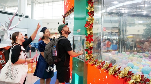 Không chỉ mang đến niềm vui cho hành khách đi máy bay, Cảng HKQT Tân Sơn Nhất còn mang trải nghiệm thú vị đến người thân đón tiễn tại nhà ga Quốc nội. Một photo booth tràn ngập màu sắc Giáng Sinh được đặt tại tiền sảnh nhà hàng Phoenix giúp du khách lưu giữ những hình ảnh đẹp trong mùa lễ hội. Trong khung giờ từ 8-10 giờ mỗi ngày, tại khu vực này, du khách còn có cơ hội được nhận voucher giảm giá đặc biệt một số dịch vụ tại sân bay.
