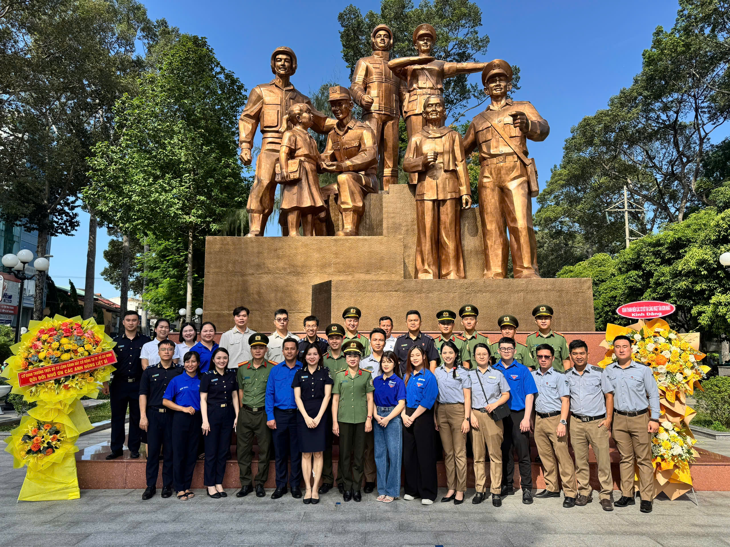 Tuổi trẻ các cơ sở Đoàn khu vực Cảng HKQT Tân Sơn Nhất dâng hoa tượng đài Công an nhân dân vì bình yên cuộc sống tại Công viên Âu Lạc