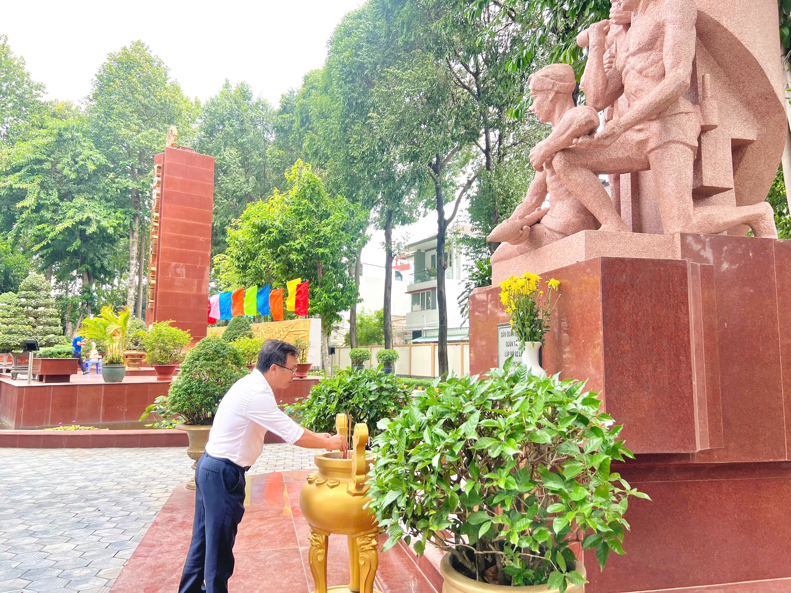 Tuổi trẻ Cảng HKQT Tân Sơn Nhất tham gia chương trình dâng hương, dâng hoa tại Nghĩa trang Liệt sĩ Củ Chi, Đài tưởng niệm Liệt sĩ Tân Bình và tượng đài "Công an nhân dân vì bình yên cuộc sống" tại Công viên Âu Lạc