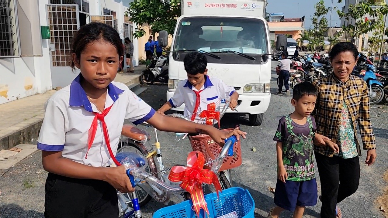 Trao tặng xe đạp cho các em học sinh có hoàn cảnh khó khăn.