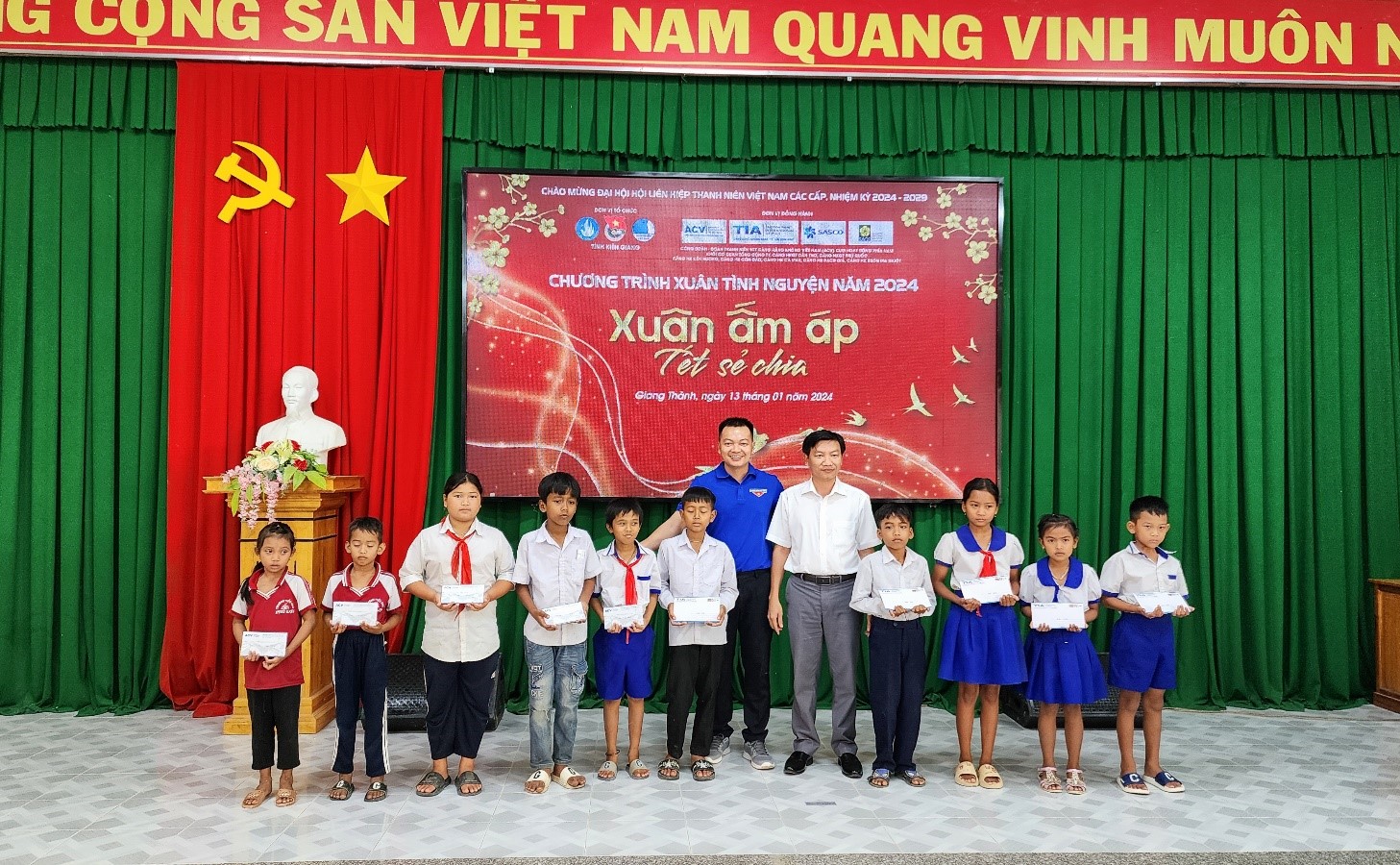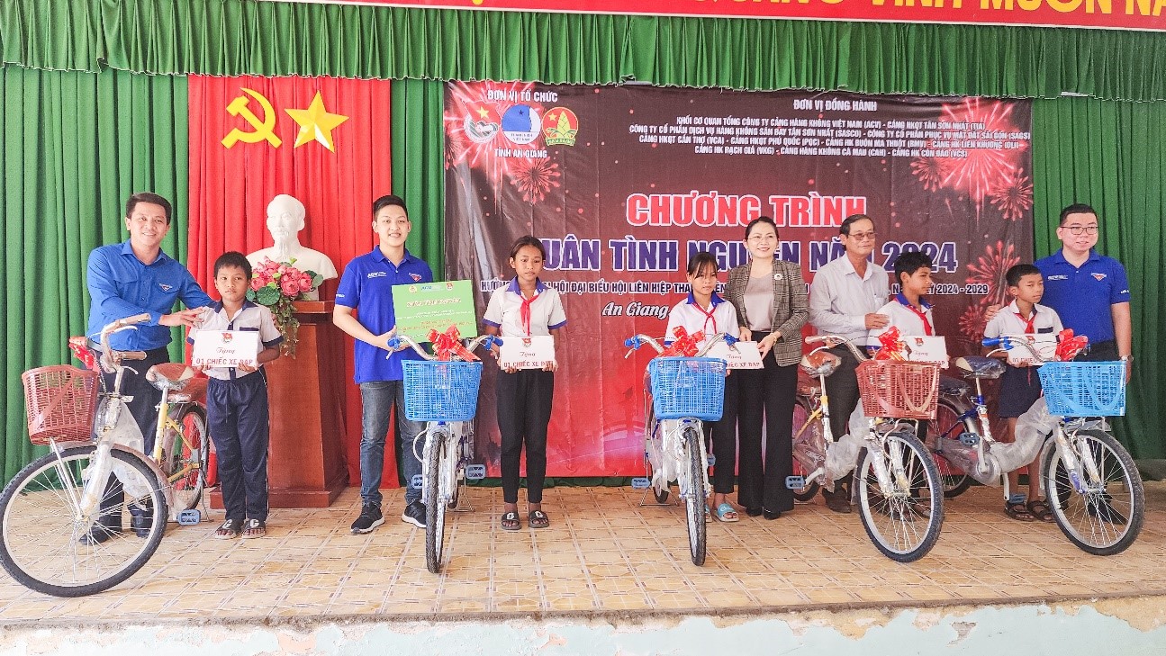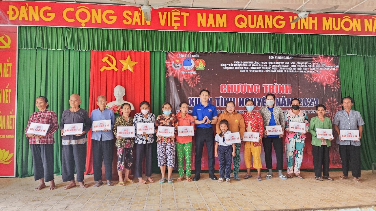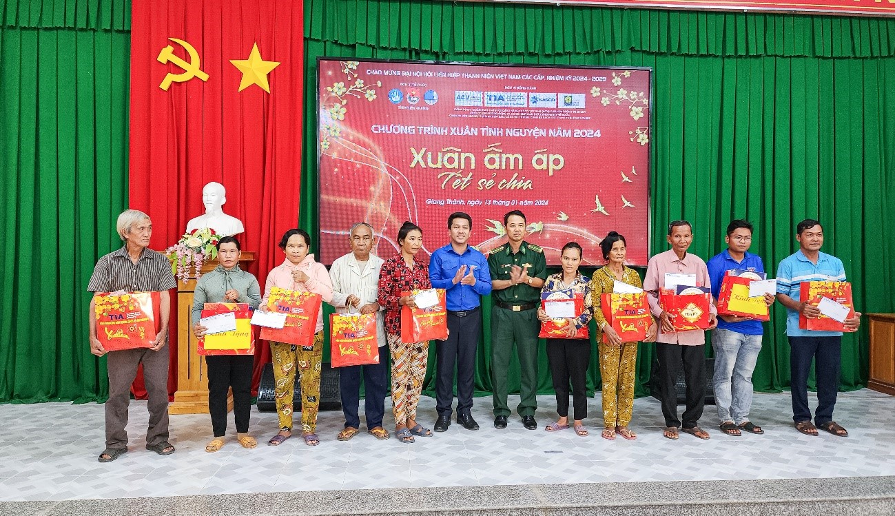 Ngày 12/01/2024, Đoàn Thanh niên Cảng HKQT Tân Sơn Nhất đã di chuyển đến UBND xã Lương Phi, Huyện Tri Tôn, tỉnh An Giang và phối hợp với các cơ sở Đoàn trực thuộc Đoàn Thanh niên TCT Cảng HKVN, khu vực miền Nam cùng chính quyền địa phương tổ chức Chương trình Xuân tình nguyện năm 2024. Nhiều hộ dân đã có mặt từ rất sớm để chờ đón Đoàn. Đại diện xã Lương Phi đã báo cáo sơ lược về tình hình của địa phương và bày tỏ lời cảm ơn đến với tập thể Đoàn tình nguyện. Tại đây, Đoàn đã trao tặng 350 thẻ Bảo hiểm y tế; 20 phần quà cho gia đình chính sách, hộ nghèo; trao tặng 20 xuất học bổng cho các em học sinh nghèo, hiếu học và trao tặng 10 xe đạp cho các em học sinh có hoàn cảnh khó khăn.