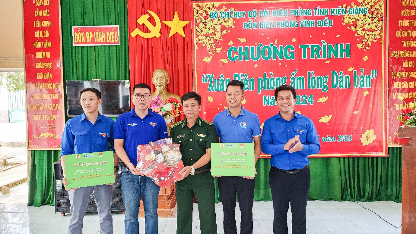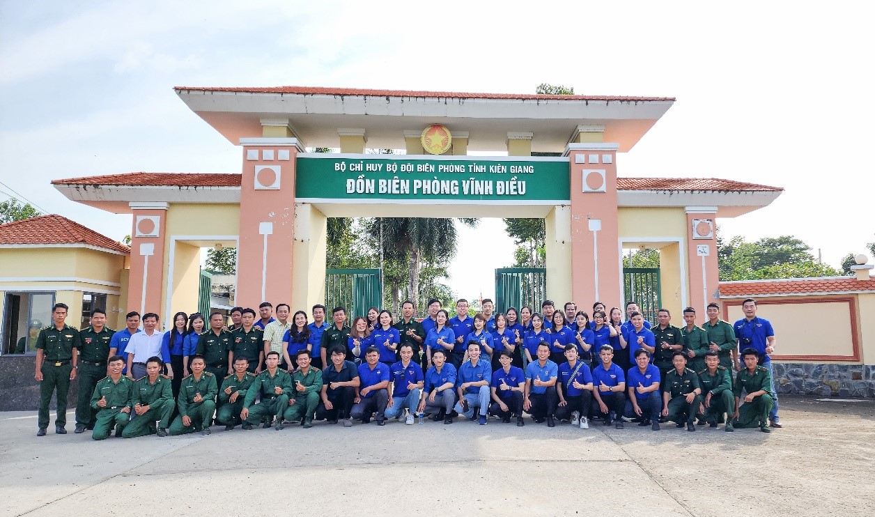 Hành trình đưa Đoàn đến thăm Đồn Biên phòng Vĩnh Điều thuộc Bộ Chỉ huy bộ đội biên phòng tỉnh Kiên Giang thật nhiều ấn tượng . Tại đây, Đoàn tình nguyện đã được giới thiệu sơ lược về đặc điểm tình hình, vai trò, nhiệm vụ cũng như tầm quan trọng của đơn vị đóng quân, canh gác, bảo vệ an toàn khu vực cửa khẩu khu vực giáp ranh với nước bạn Camphuchia. Đồng chí Ngô Hoài Sơn, Quyền Bí thư Đoàn Thanh niên TCT Cảng HKVN đã thay mặt tặng quà và nhu yếu phẩm cho đại diện Đồn.