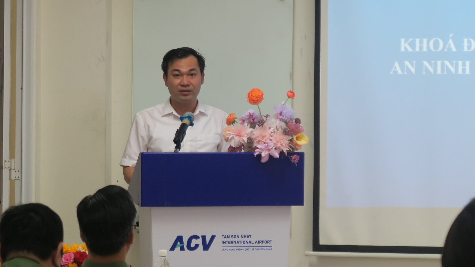 Ông Nguyễn Toàn Đắc, Phó Giám đốc Cảng hàng không quốc tế Tân Sơn Nhất phát biểu tại lễ khai giảng