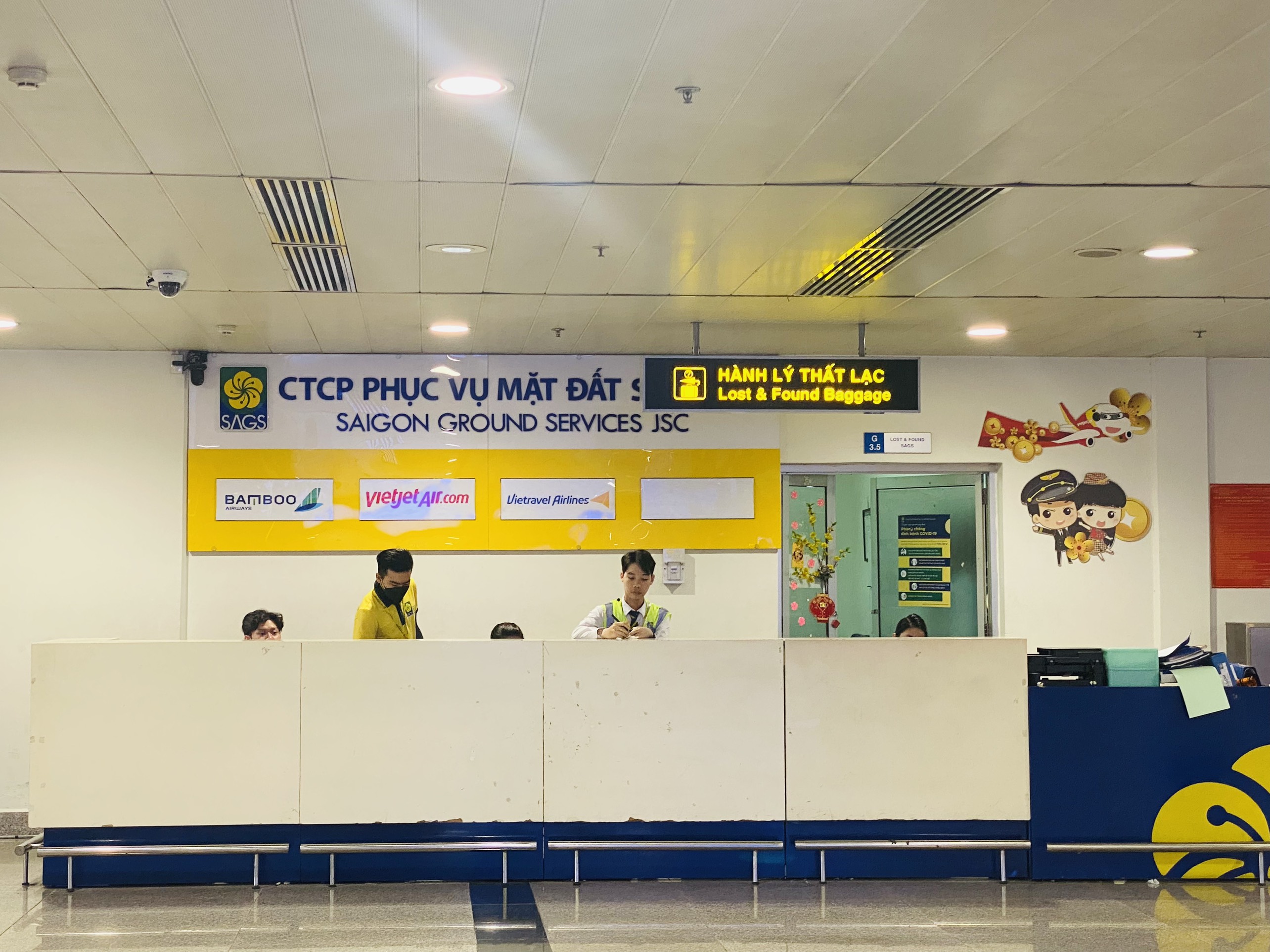 - Trong trường hợp mất tài sản, đề nghị hành khách liên hệ ngay với bộ phận thất lạc hành lý tại sân bay. Hiện có quầy thất lạc hành lý của Công ty dịch vụ mặt đất sân bay Việt Nam Chi nhánh Tân Sơn Nhất (VIAGS TSN) và Công ty Cổ phần phục vụ mặt đất Sài Gòn (SAGS) tại nhà ga đến.