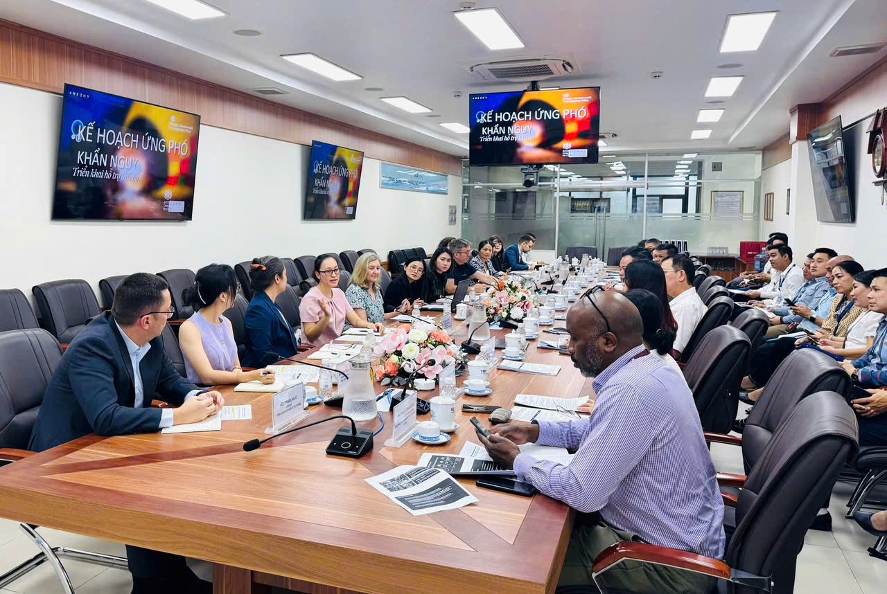 Ban Giám đốc Cảng HKQT Tân Sơn Nhất đã chia sẻ các nội dung liên quan theo kế hoạch khẩn nguy sân bay Cảng HKQT Tân Sơn Nhất được Cục HKVN chấp thuận ban hành theo Văn bản số 1780/CHK-QLC ngày 12/04/2024, đồng thời giới thiệu về năng lực thông hành của sân bay, khả năng mở rộng, kích hoạt khẩn nguy theo tình huống cụ thể (khủng bố đánh bom, tai nạn hàng không, thiên tai..), cũng như chia sẻ các đầu mối liên hệ để yêu cầu hỗ trợ công dân tại sân bay kịp thời, bao gồm: Sở Ngoại vụ thành phố HCM, Cảng vụ hàng không miền Nam, Công an Cửa khẩu Cảng HKQT TSN, Trung tâm khẩn nguy Cảng hàng không sân bay và Hãng hàng không.