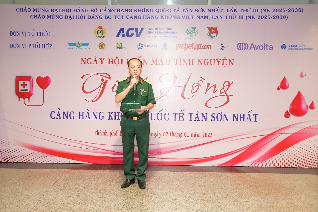 Chia sẻ tại chương trình, Đại tá Nguyễn Văn Tuấn, Chủ nhiệm Chính trị Bệnh viện Quân y 175 cho biết: “Vấn đề bổ sung vào quỹ dự trữ máu tại bệnh viện luôn là một vấn đề cấp thiết và ý nghĩa. Hoạt động hiến máu hằng năm tại Cảng HKQT Tân Sơn Nhất đã góp phần bổ sung kịp thời và đa dạng về nhóm máu, trong đó có nguồn máu hiếm. Bệnh viện 175 gửi lời cảm ơn đến Ban lãnh đạo Cảng HKQT Tân Sơn Nhất đã gửi gắm niềm tin vào đội ngũ y/bác sĩ của bệnh viện và tạo mọi điều kiện tốt nhất để công tác hiến máu được diễn ra thuận lợi. Thay mặt Bệnh viện, kính gửi lời cảm ơn và lời chúc mừng năm mới đến các đơn vị đã cùng đồng hành trong các hoạt động của chương trình hiến máu”.